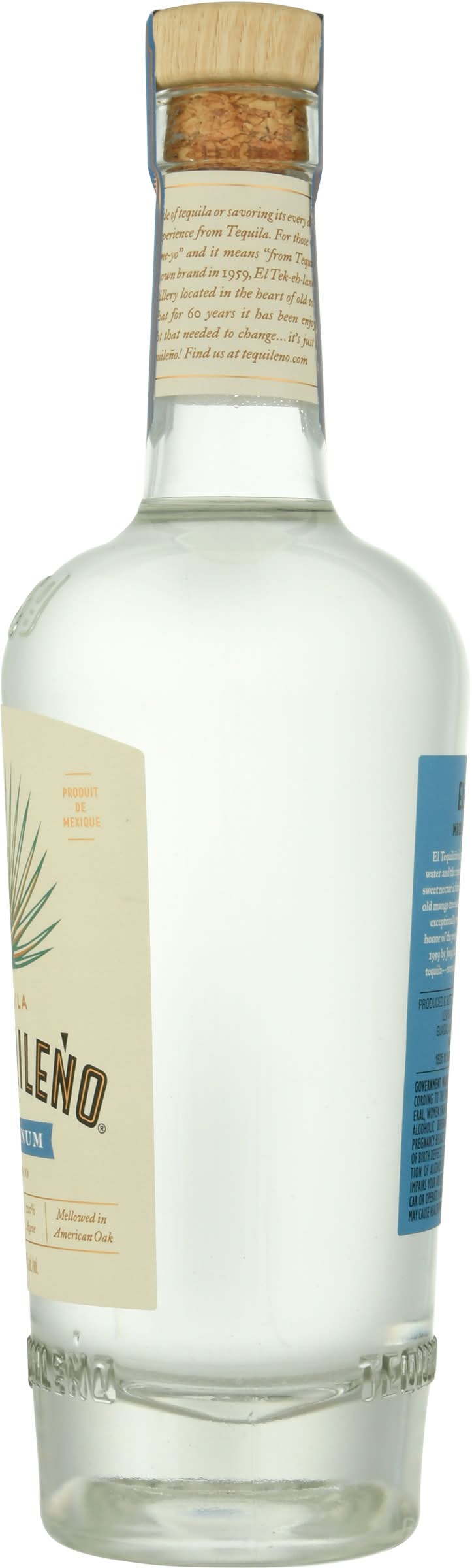 Natural volcanic spring water. Copper stills. 100% agave. Mellowed in American oak. El Tequileno is crafted using pure natural volcanic spring water and the ripest agave from the Highlands. The resulting sweet nectar is fermented with yeast influenced by our 150 year old mango trees and distilled in copper pot stills to produce an exceptionally smooth and full bodied Tequila. Named in honor of the people of Tequila, El Tequileno was founded in 1959 by Jorge Sales Cuervo to produce the finest quality tequila - every drop, a celebration of passion and heritage. Please enjoy responsibly. tequileno.com. 80 Product of Mexico. Produced & Bottled by Jorge Salles Cuervo Y Sucs., S.A. DE C.V., Leandro Valle 991, Col. Centro, C.P. 44100 Guadalajara, Jalisco, Mexico. Alcohol by volume: 40%