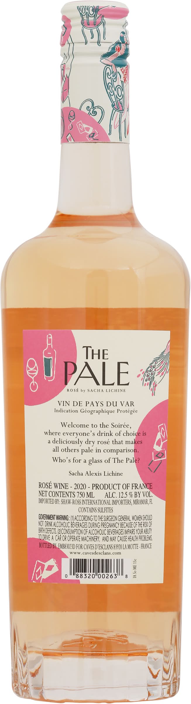 Welcome to the Soiree, where everyone's drink of choice is a deliciously dry rose that makes all others pale in comparison. Who's for a glass of The Pale? - Sacha Alexis Lichine. • Alcohol by volume: 12.5% • 2020
