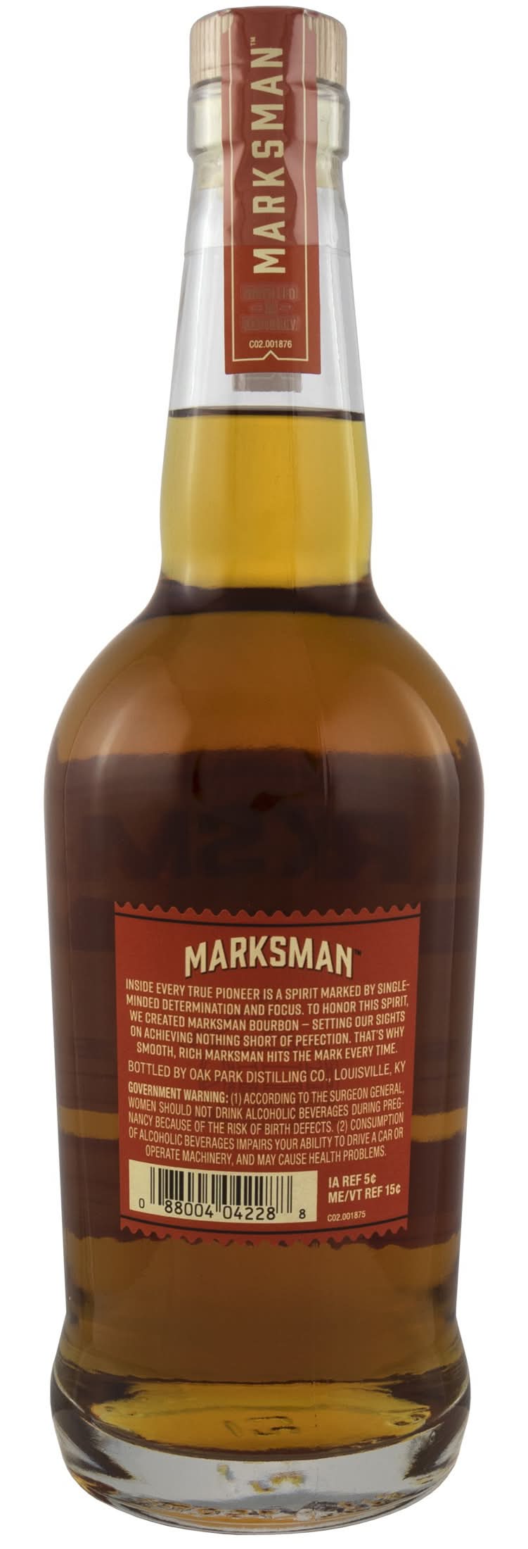 Inside every true pioneer is a spirit marked by single-minded determination and focus. To honor this spirit, we created Marksman Bourbon -- setting our sights on achieving nothing short of perfection. That's why smooth, rich Marksman hits the mark every time. Alcohol by volume: 40%