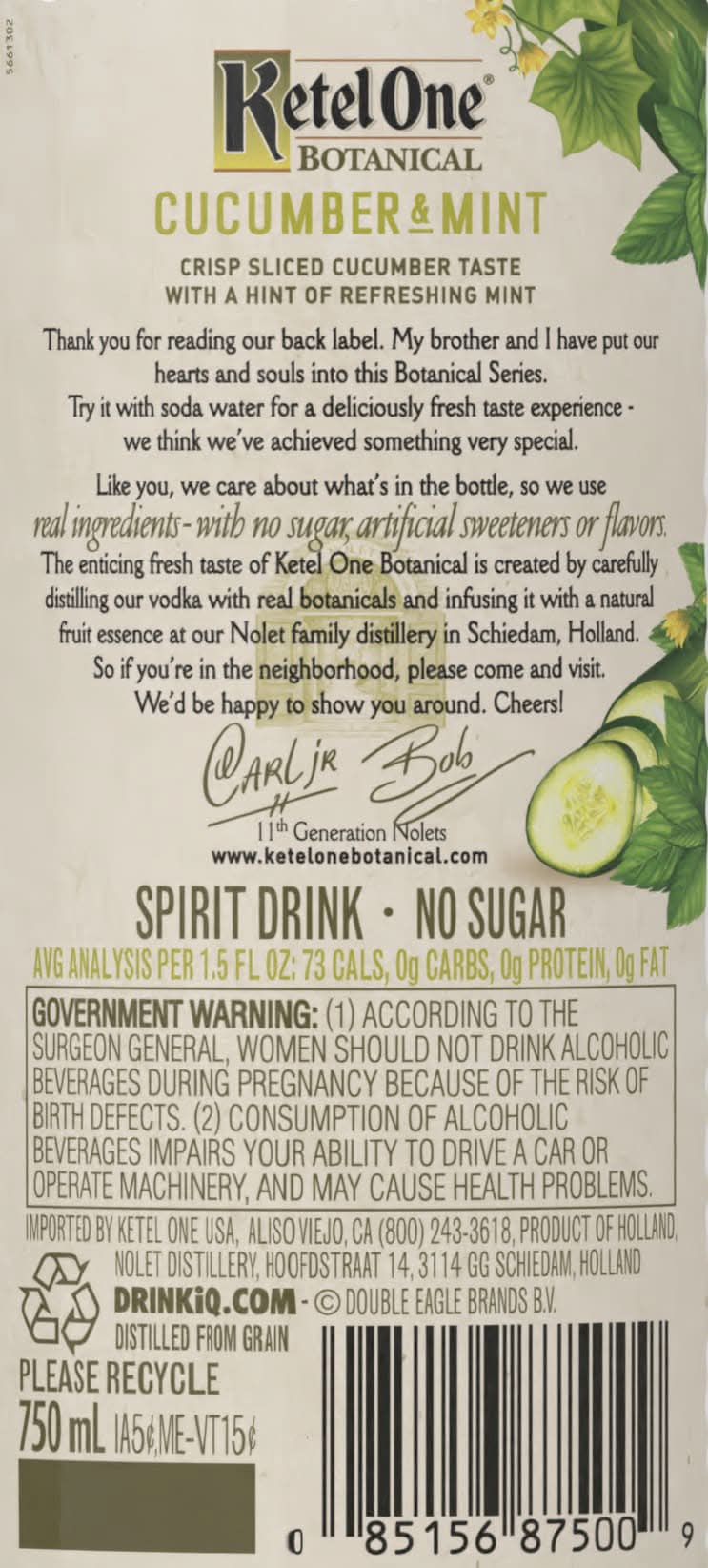 Ketel One Botanical No Sugar Flavored Vodka, Cucumber & Mint (750 ml)