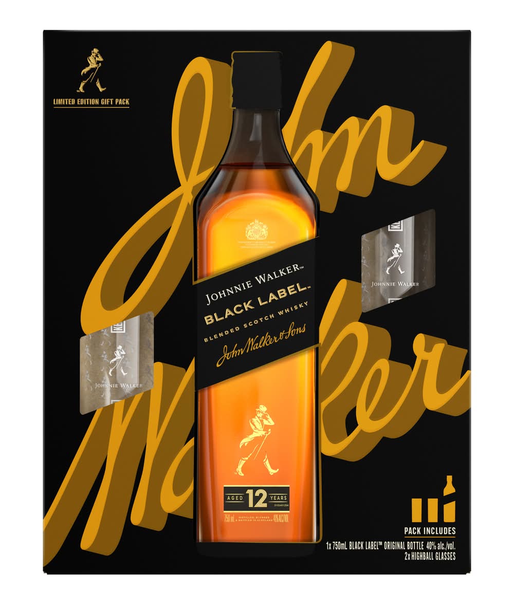 Johnnie Walker Black Label Blended Scotch Whisky Gift Set 12 Year Old (750 ml)