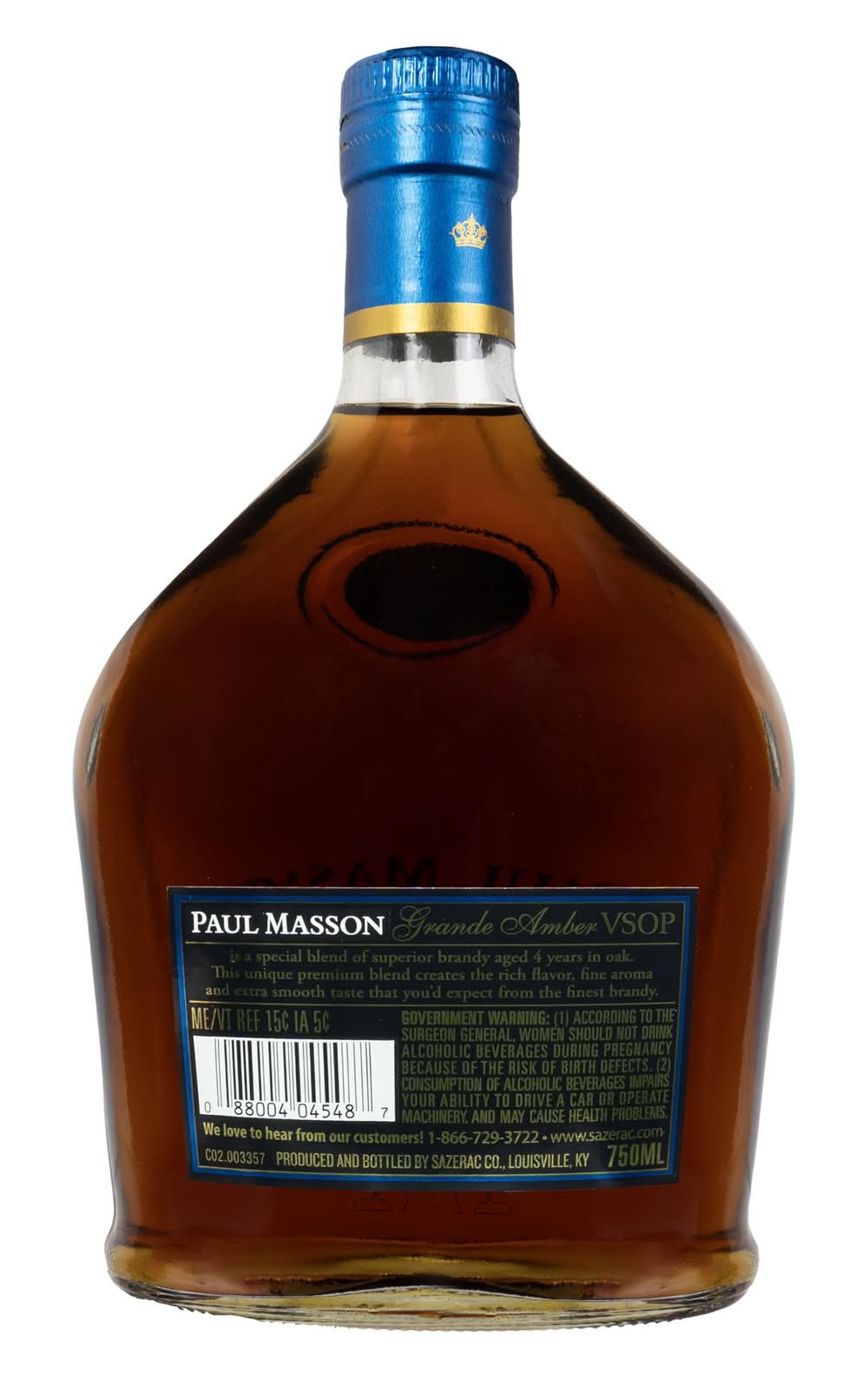 Define your moment with the sweet, lush flavor of Paul Masson Grande Amber VSOP Brandy. Individually aged at least four years, this dark amber brandy features tasting notes of oak spice, ginger, vanilla, dark chocolate and the subtle, yet refined, presence of the American oak bourbon barrel. Paul Masson Grande Amber VSOP Brandy tastes great served on the rocks at 40% alcohol by volume and is the perfect complement to your favorite mixer. Enjoy this liqueur with Paul Masson Red Berry Brandy to make a Very Berry Palmer or use Paul Masson Grande Amber VSOP in classic brandy cocktails like a sidecar, sazerac or French 75. For more than 70 years, Paul Masson spirits have provided great flavor and smooth taste to elevate any social occasion. Store Paul Masson at room temperature until you’re ready to enjoy the ultimate blend of American brandy. For moments at ease, Paul Masson Flavors bring a relaxed, chilled out vibe to the table. Alcohol by volume: 40%