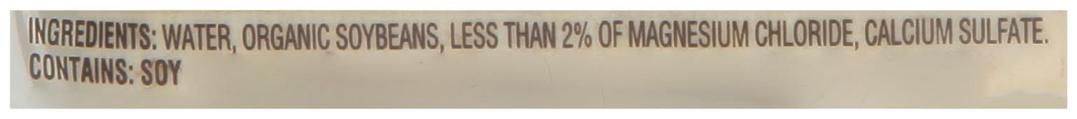 Ingredients: Water, Organic Soybeans, Less than 2% of Magnesium Chloride, Calcium Sulfate Contains: Soybeans