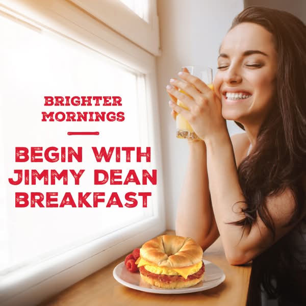 Rise and shine for a warm croissant sandwich with Jimmy Dean Bacon, Egg and Cheese Croissant Sandwiches. Tasty bacon, fluffy eggs and melty cheese all come together on a buttery croissant for a frozen breakfast sandwich that gives you a delicious start to your day. Packed with 10 grams of protein per serving, Jimmy Dean breakfast sandwiches help give you more fuel for your morning. • Number of servings: 8 • The Hillshire Brands Company, Chicago, IL, 60607, Ph: 800-925-DEAN.