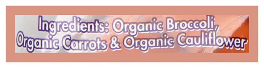 Ingredients: Organic Broccoli, Organic Carrots & Organic Cauliflower.