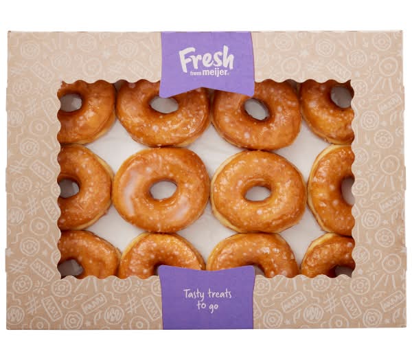 Fresh From Meijer Glazed Donut Rings are soft and sweet, making them a delightful choice for dipping or slow savoring. They are suitable for pairing with coffee and can be enjoyed as part of breakfast or as a snack. These donuts are positioned as a treat that can be enjoyed individually or shared with family.
