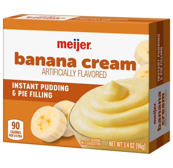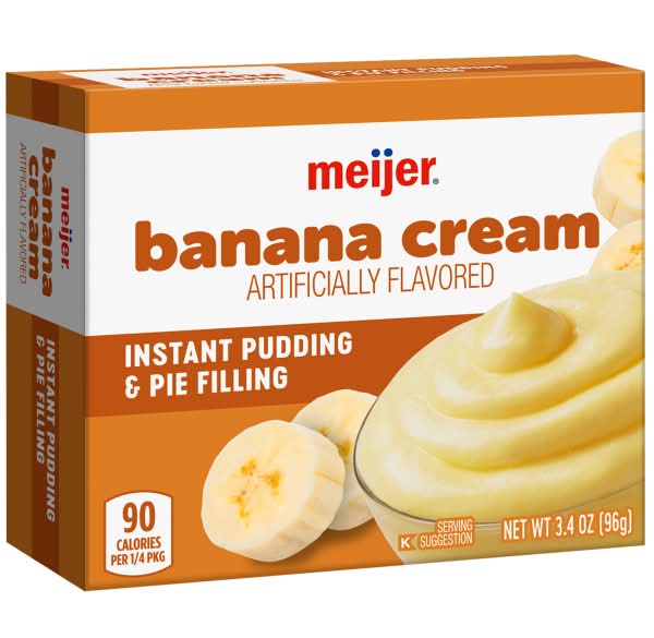 Meijer Instant Banana Cream Pudding & Pie Filling is a versatile dessert mix that can be used to create either banana cream pudding or pie. Designed for a creamy texture upon preparation, it is intended to be mixed with milk and requires chilling to properly set when used for pies. Additionally, it can be utilized as a baking ingredient in various recipes. This product offers a convenient solution for quickly preparing desserts with a delightful banana cream flavor.