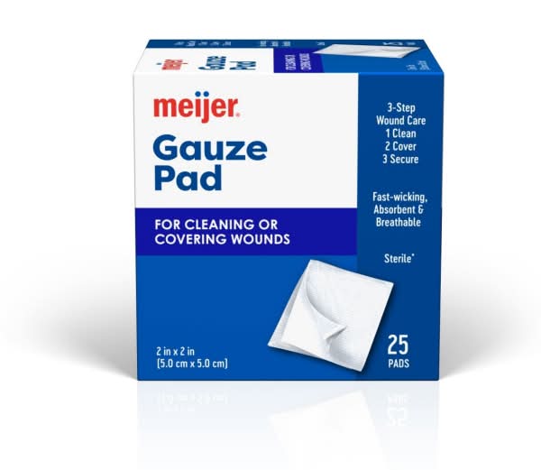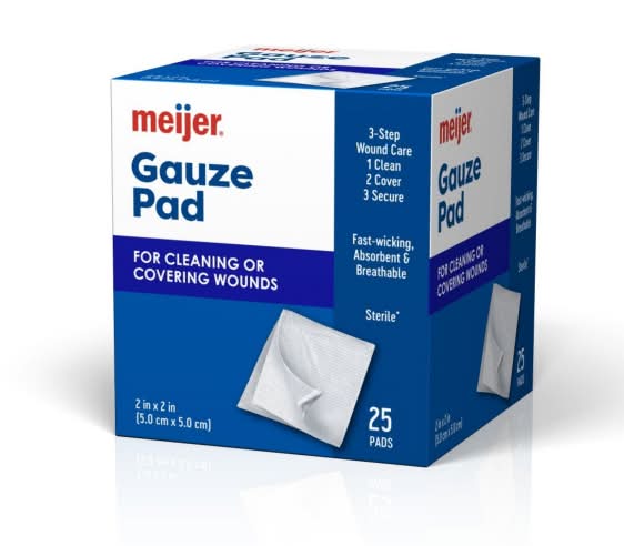 Meijer Gauze Pads is made with a Rayon/Polyester blend, designed for cleaning and covering wounds. These pads are breathable and super absorbent, making them suitable for medical or first aid use.