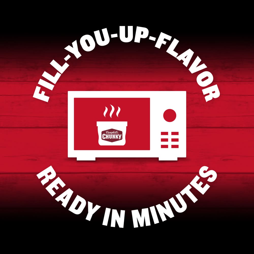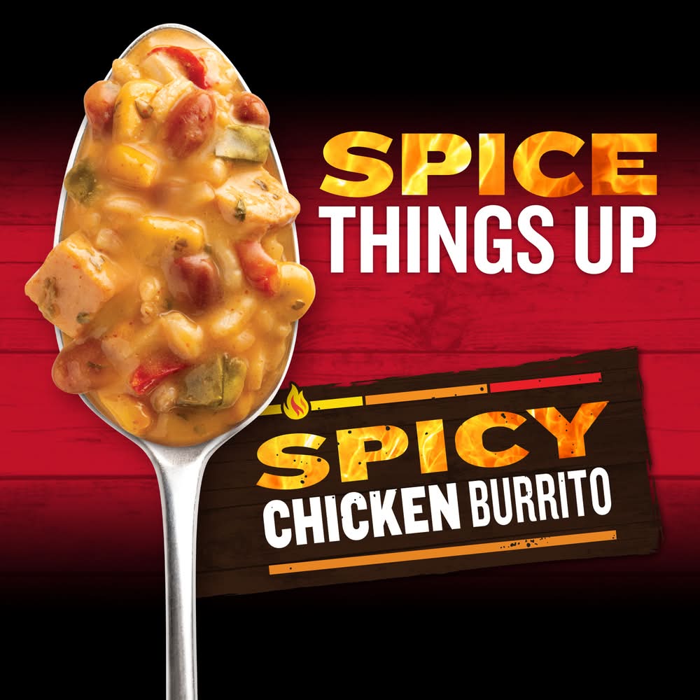 Turn up the heat on your hunger with Campbell’s Chunky Spicy Chicken Burrito Soup. Inspired by bold Southwestern flavors, this spicy chicken soup features big pieces of chicken meat with no antibiotics, rice, pinto beans, cheese, and roasted poblano chili peppers for a savory, smoky taste with just the right amount of heat. With 14g of protein in each single-serve bowl, it’s a satisfyingly spicy soup that fuels even the heartiest of appetites. Campbell’s Chunky Soup is a year-round pantry staple and the MVP of game day snacks, delivering a winning combination of flavor and convenience. Enjoy a warm bowl of this microwave soup when watching the game from home, or savor it on-the-go as a convenient snack at your next tailgating event. To prepare, simply heat in the microwave for 1.5 minutes. Whether you’re a football fan or simply craving something hearty, Campbell’s Chunky Spicy Chicken Burrito Soup will keep you feeling full and satisfied from kickoff to the final whistle. Make every game day a winner with Campbell's Chunky – Soup That Eats Like a Meal. Flavor: Spicy chicken-burrito