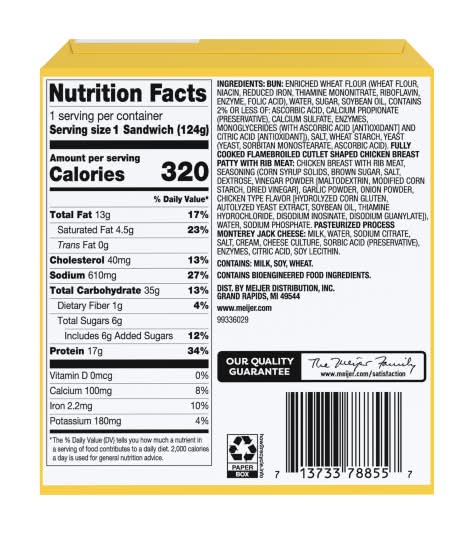 Meijer Grilled Chicken with Cheese Frozen Sandwich, 4.4 oz