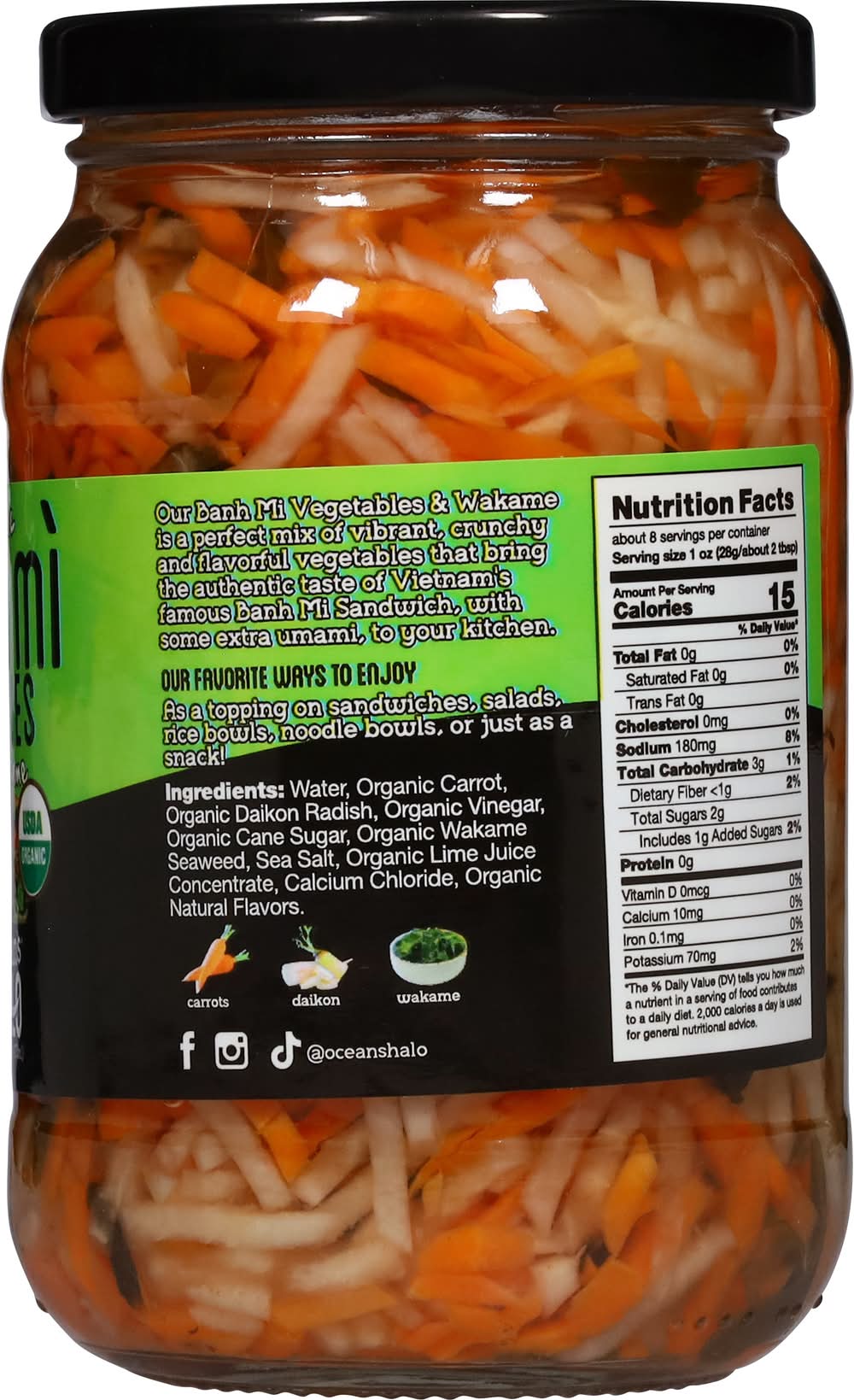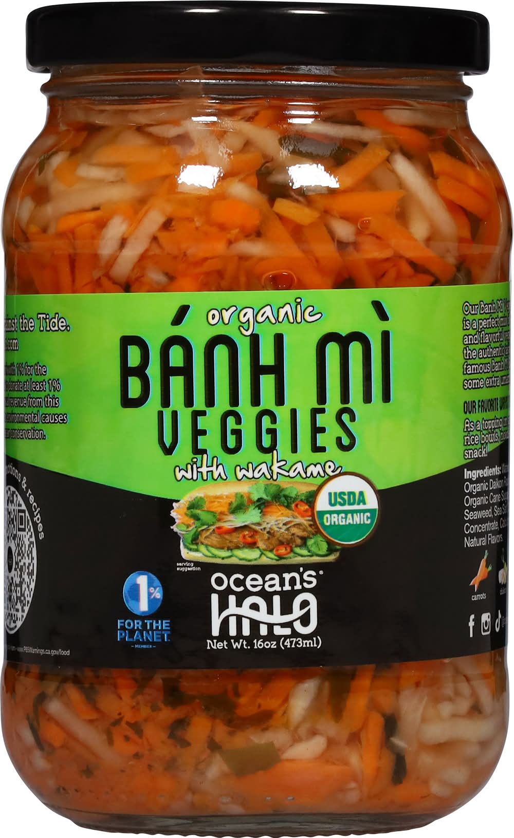 Ocean's Halo Banh Mi veggies are both organic and shelf stable, providing Ocean's Halo Banh Mi veggies are both organic and shelf stable, providing consumers with ready-to-serve traditional fermented carrots and daikon along with savory wakame seaweed that they can keep in the frig for multiple occasions.
