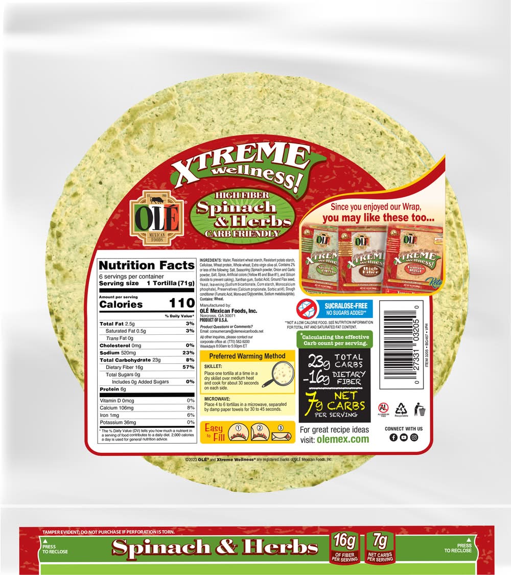 Tortilla Wraps, Spinach & Herb • Ole Mexican Foods, Inc., Norcross,GA,30071 • Packaging: Reusable