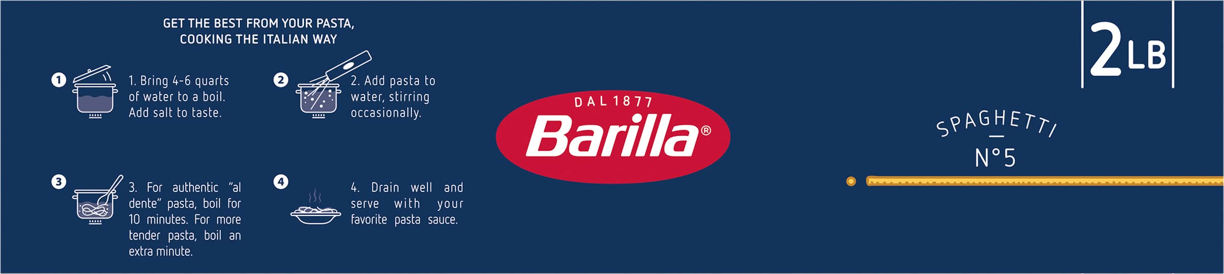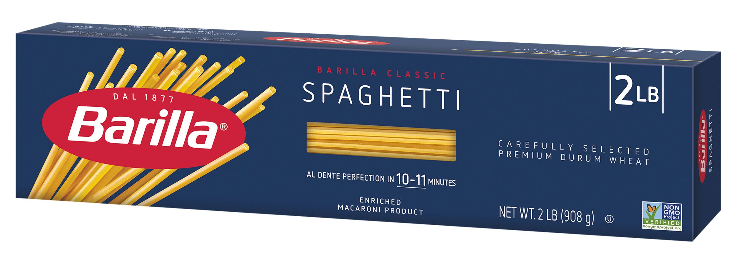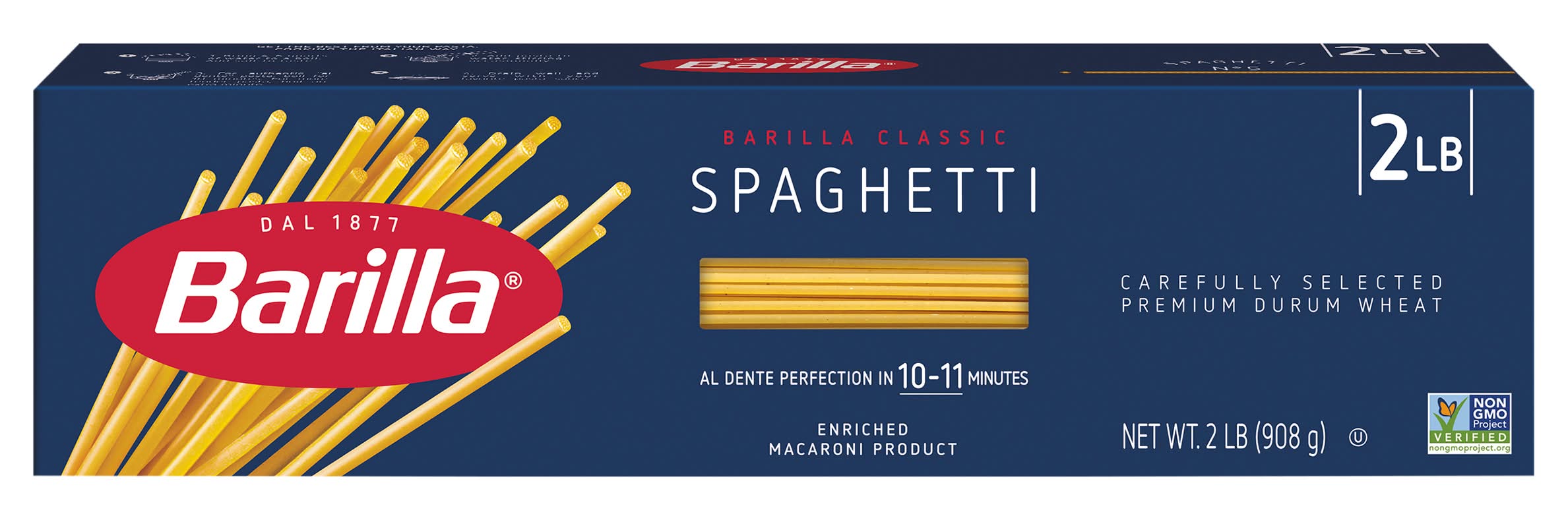Spaghetti • Number of servings: 16 • Barilla America, Inc., Northbrook, IL, 60062, Ph: 800-922-7455 • Packaging: Reusable