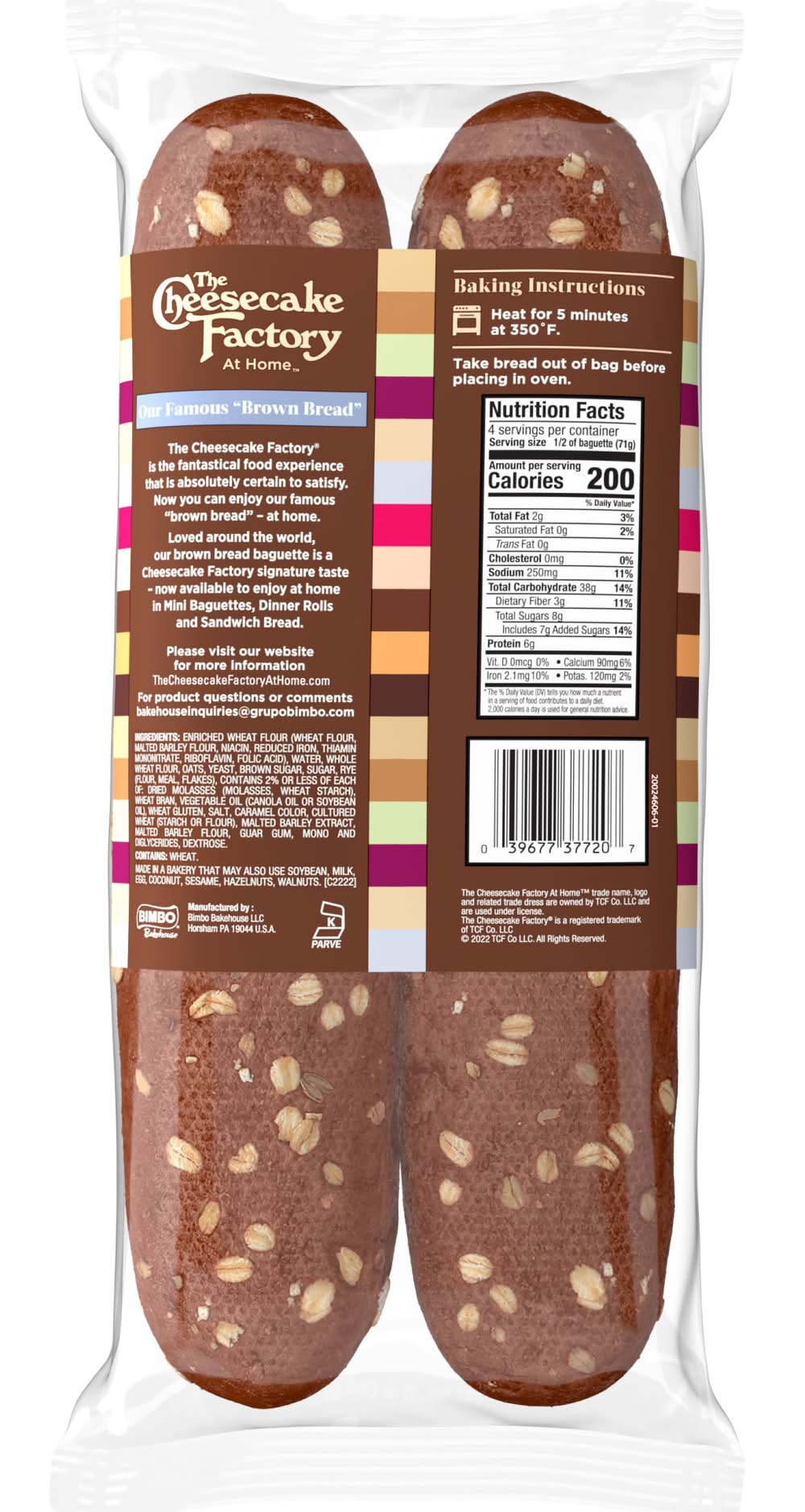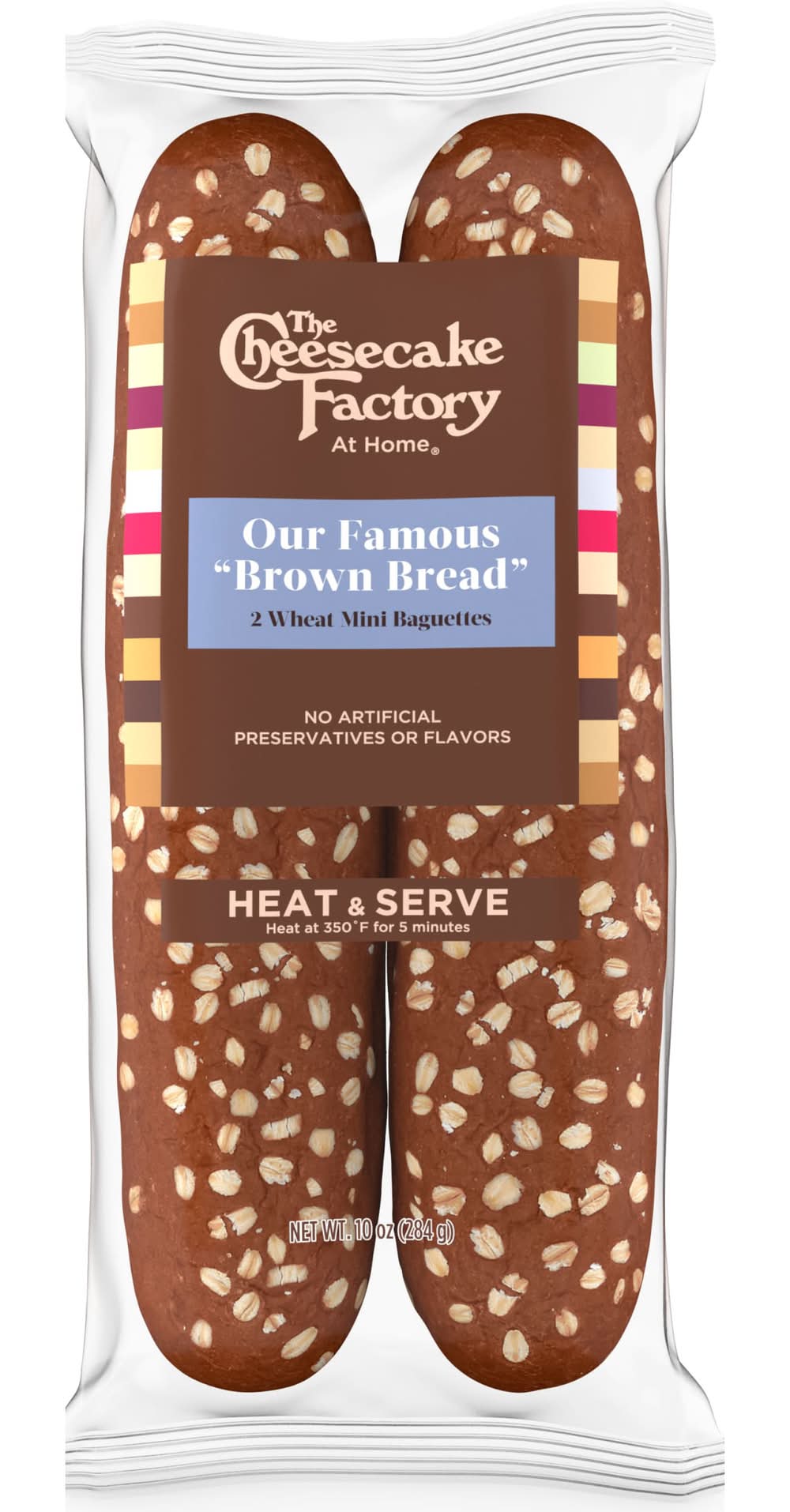The Cheesecake Factory’s Famous “Brown Bread” is now available to enjoy at home! The sweet wheat baguette topped with oats is a signature item of The Cheesecake Factory® restaurants. Flavor: Wheat