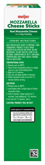made with real mozzarella cheese encased in a crispy breading. These cheese sticks are air fryer ready, offering a convenient and delicious snack or appetizer for any occasion. Packaging: Reusable