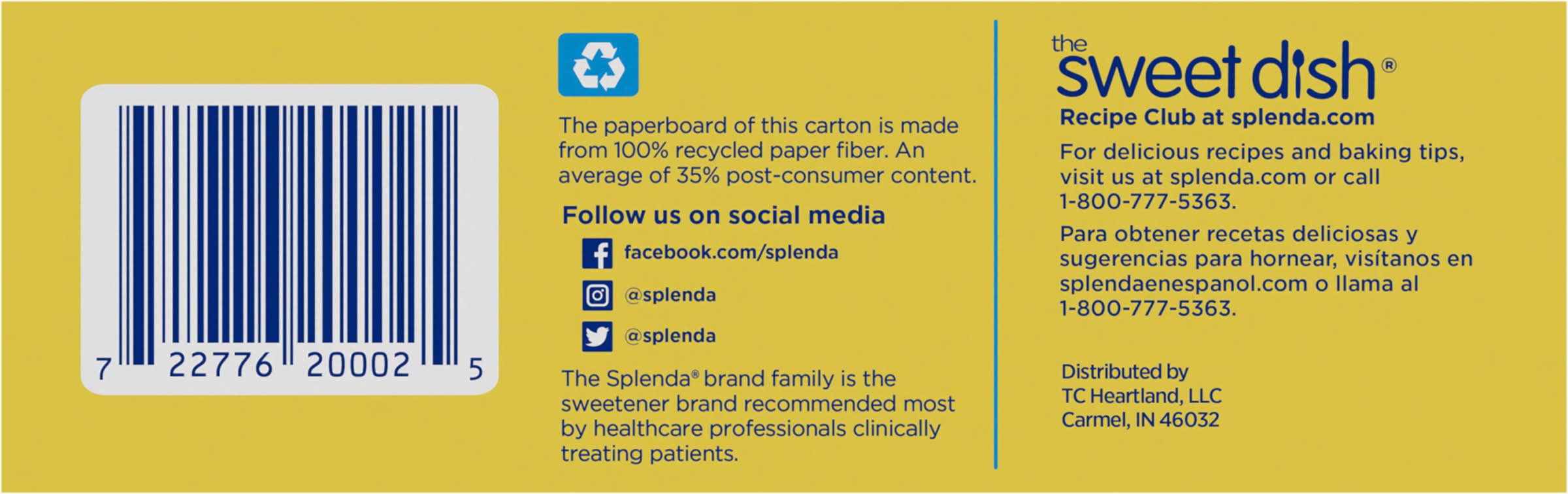 Zero calorie sweetener. Tastes like sugar! Celebrating years of sweetness. No. 1 recommended brand by doctors and dietitians (The Splenda brand family is the sweetener brand recommended most by healthcare professionals clinically treating patients).
