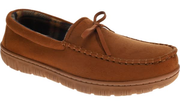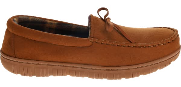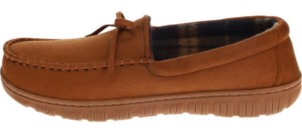 Falls Creek moccasin slipper, designed for comfort and functionality. The plaid fleece lining add's an extra layer of warmth and softness around your ankles, ensuring a snug fit every time you slip them on. Th outsole provides exceptional traction and durability for indoor and outdoor wear. Whether you're lounging around the house or running errands, these slippers will keep your feet feeling comfortable and supported. Treat yourself to the perfect blend of style and practicality with our Moccasin Slipper, your go-to choice for all-day comfort and relaxation. • Color: Tan • Size: X Large