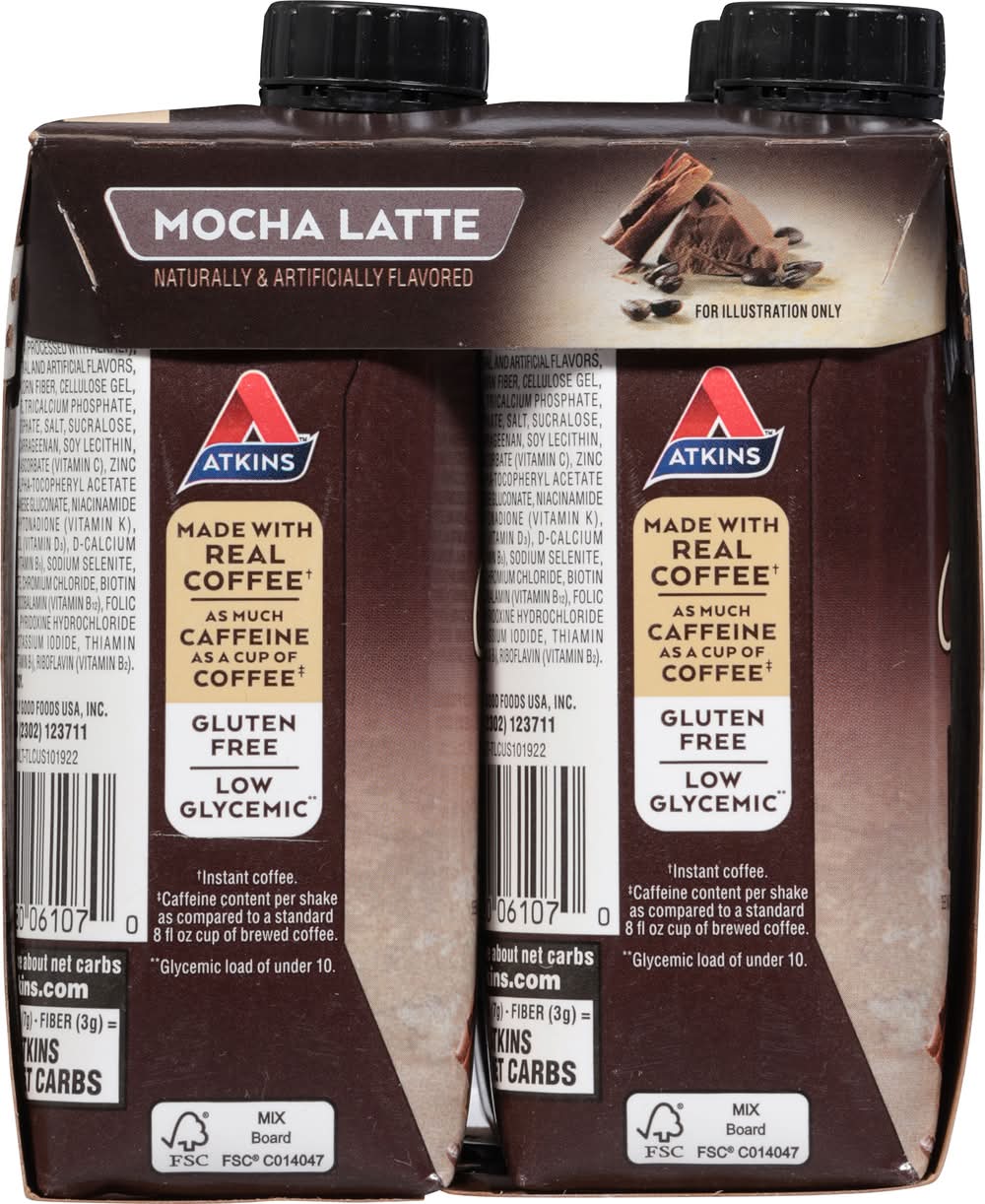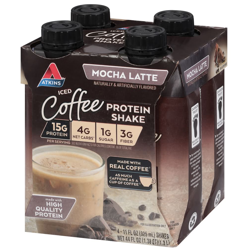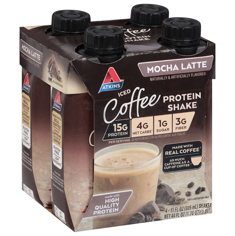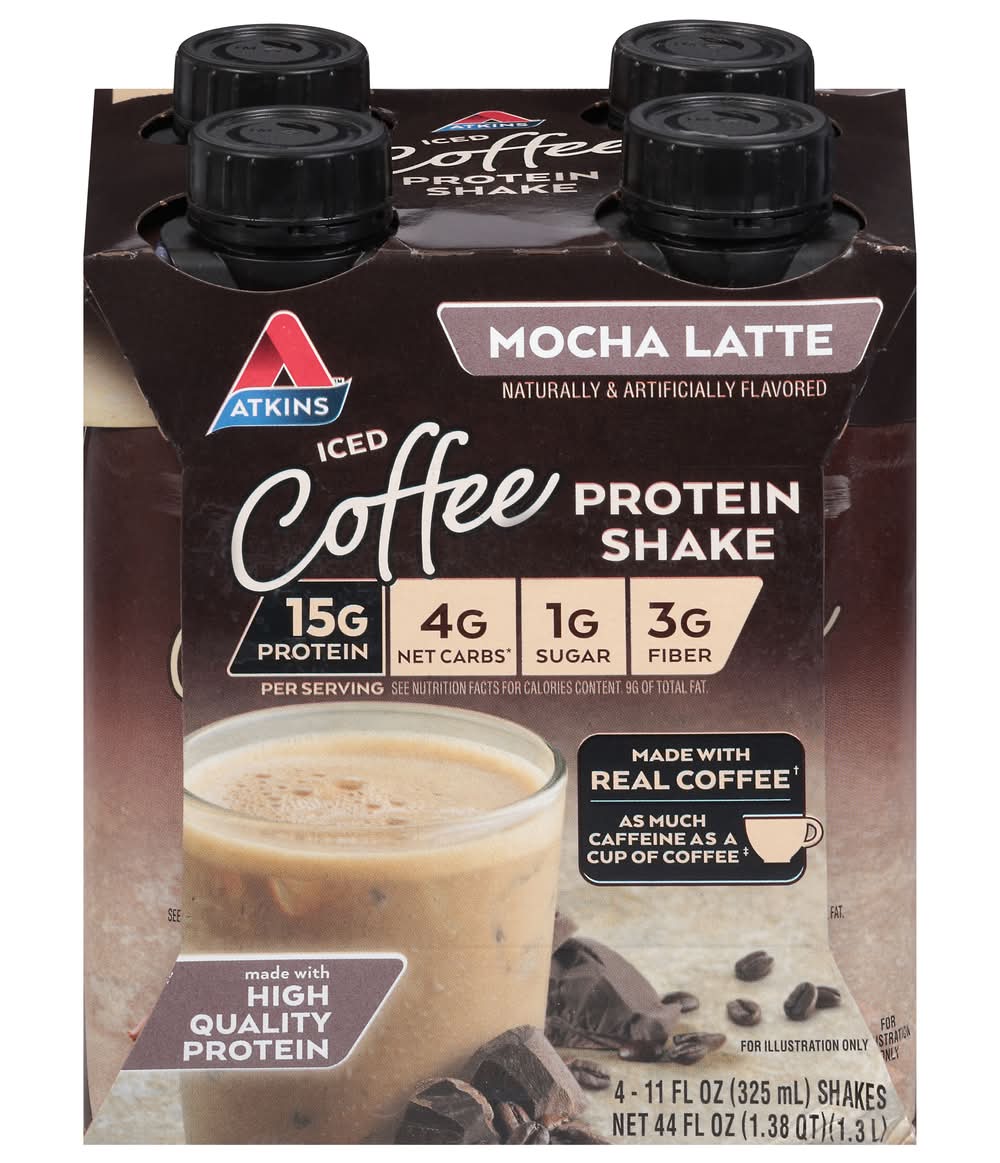 Atkins Iced Coffee Protein Shakes, Mocha Latte (4 x 11 fl oz)