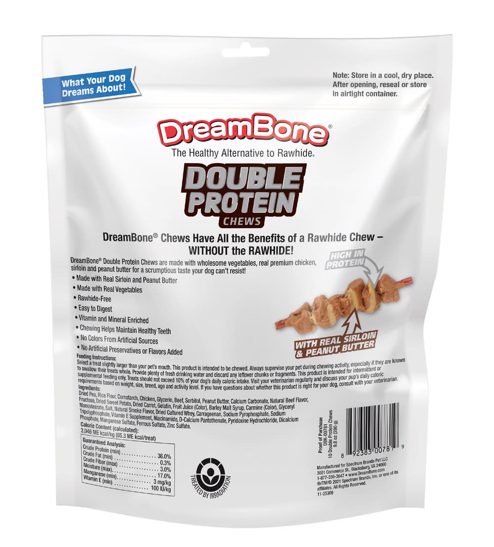 DreamBone Double Protein Chews Made With Real Chicken, Sirloin and Peanut Butter, 10 Count, Rawhide-Free Chews For Dogs (0.65 lbs)