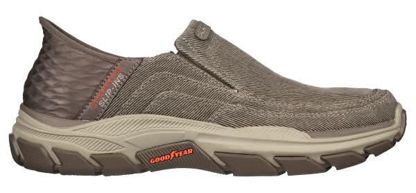 Simply step in and go wearing Skechers Hands Free Slip-ins® Relaxed Fit®: Respected - Holmgren. Designed with our exclusive Heel Pillow, this laceless style also features a canvas upper with twin gore panels for ease of wear, a Skechers Air-Cooled Memory Foam® comfort insole, Goga Mat Arch cushioning, and an anti-slip Goodyear® Rubber Outsole.