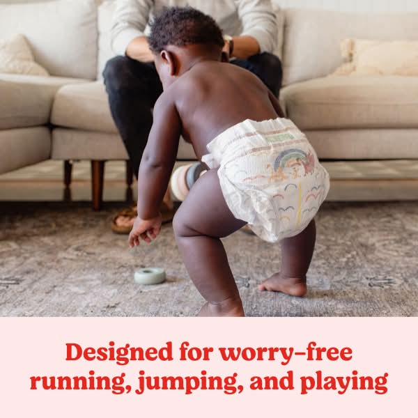 Huggies Little Movers Baby Diapers are designed to stay in place through active play! These disposable baby diapers are designed for worry-free running, jumping and playing without any leaks or disruptions. Each Little Movers diaper is up to 100% leak-free (even for blowouts!) and offers up to 12 hours of comfortable protection to keep your baby active and clean. Our diapers feature a curved and stretchy fit and a flexible, yet secure waistband designed to prevent leaks and help keep your baby comfortable while on the move. Double Grip Strips provide a secure, flexible fit and the diaper is designed to help eliminate gaps at the legs and waist to protect against leaks and irritation. These Huggies diapers are extra soft and contoured around the legs to help provide red-mark free, gentle protection. Little Movers are made with a fast-absorbing Dry Touch Liner and our baby diaper locks away 99% of wetness to help keep skin dry. Plus, a wetness indicator easily lets you know when your baby is ready for a diaper change. Little Movers Diapers are available in size 3 (16-28 lbs), size 4 (22-37 lbs), size 5 (27+ lbs), size 6 (35+ lbs) and size 7 (41+ lbs). • Size: 3 • Kimberly-Clark Global Sales, LLC, Neenah, WI, 54956 • Packaging: Reusable