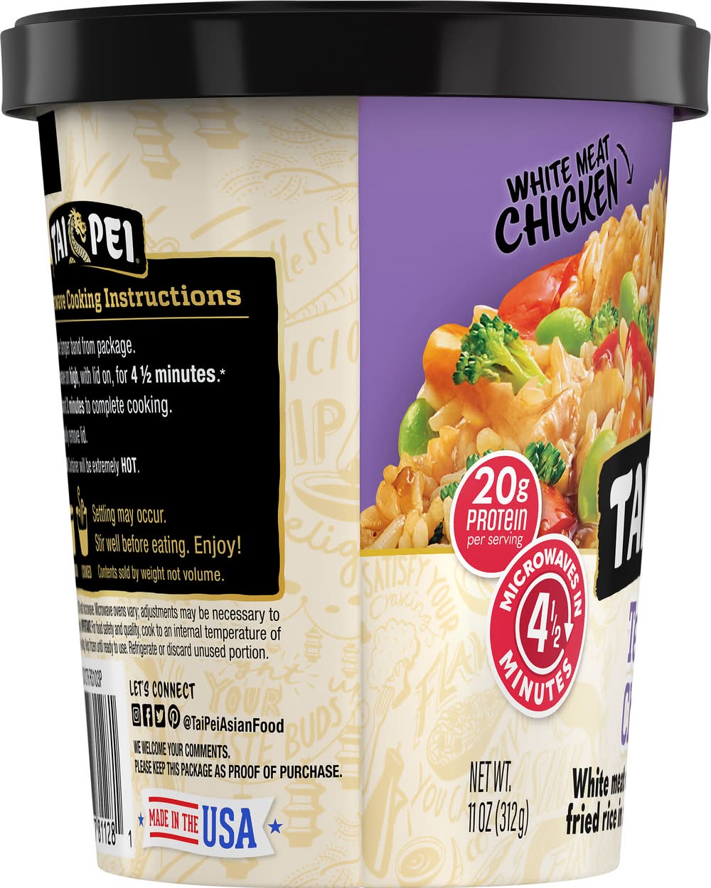 Microwave cooking instructions: 1. remove tamper band from package. 2. microwave on high, with lid on, for 4-1/2 minutes (based on a 1200 watt microwave. microwave ovens vary; adjustments may be necessary to cook thoroughly. important: for food safety and quality, cook to an internal temperature of 165 degrees f before eating. keep frozen until ready to use. refrigerate or discard unused portion). 3. let stand 2 minutes to complete cooking. 4. carefully remove lid. caution: container will be extremely hot. settling may occur. stir well before eating. enjoy! keep frozen. cook thoroughly.