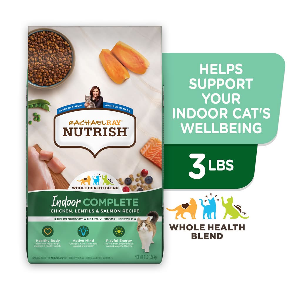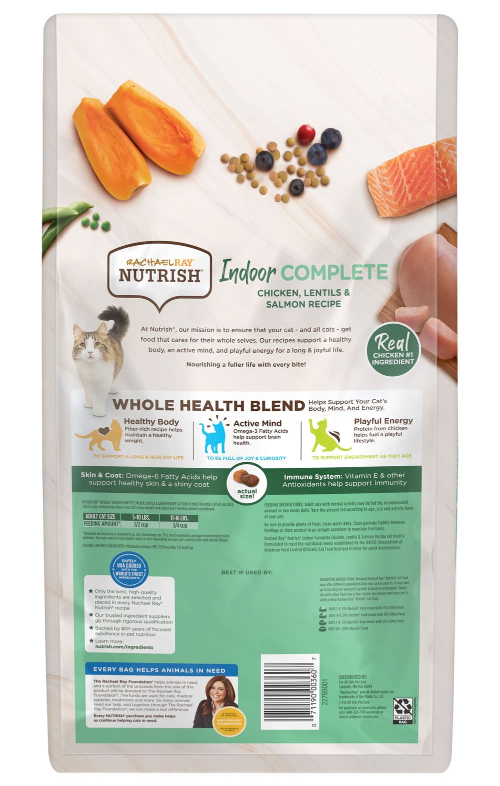 Give your cat the holistic nutrition they deserve with Nutrish Indoor Complete Chicken, Lentils & Salmon Recipe Dry Cat Food. Packed with the irresistible flavors, it isnt just tasty this indoor dry cat food is designed to support your cats active mind, healthy digestion and playful energy. This unique formula combines omega-3 fatty acids, natural prebiotics and high-quality protein to help your feline thrive. Plus, its made with natural ingredients with essential vitamins, minerals and Taurine to keep your cat feeling their best. And when you choose this wholesome dry cat food meal, youre also giving back every purchase helps animals in need through The Rachael Ray Foundation. Get some today and feed your cat the delicious nutrition they deserve. Ainsworth Pet Nutrition, LLC., Meadville,PA,16335,USA