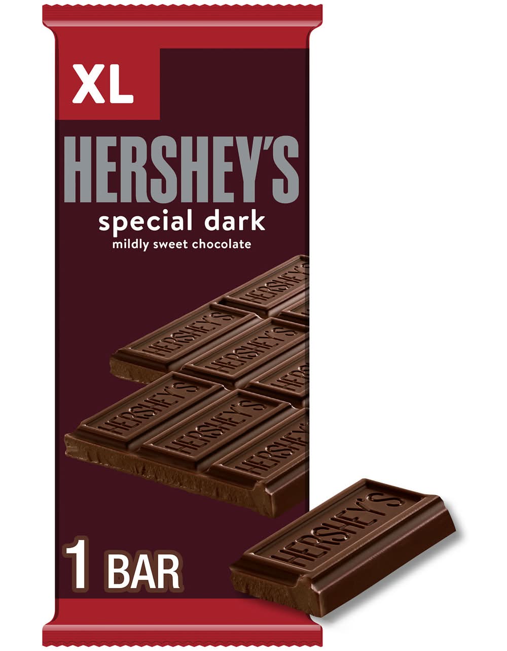 Made of the Delectable, Rich Chocolate That's Been a Classic for Decades, Hershey's Special Dark Chocolate Candy Bars Make Life More Delicious Whether They're Enjoyed Alone or Shared With Loved Ones. These Individually Wrapped, Extra Large Candy Bars Are the Perfect Treat for Countless Special and Everyday Occasions. Keep Some on Hand for Guests and Store a Few in Your Pantry for Convenient Snacking When the Mood Strikes. Show Up to Movie Night With a Xl Hershey's Special Dark Chocolate Bar to Please the Whole Crowd and Perfect the Night's Snack Selection. You Can Even Sweeten Up Your Favorite Baked Desserts by Topping Cupcakes, Brownies and Cookies With a Block or Two of This Divine Mildly Sweet Chocolate. Too. Stuff Festive Christmas Stockings, Fill Easter Baskets, Create Valentine's Day Gift Bags and Fill Halloween Party Candy Bowls With These Extra Large Treats That Suit Every Occasion. Size: XL