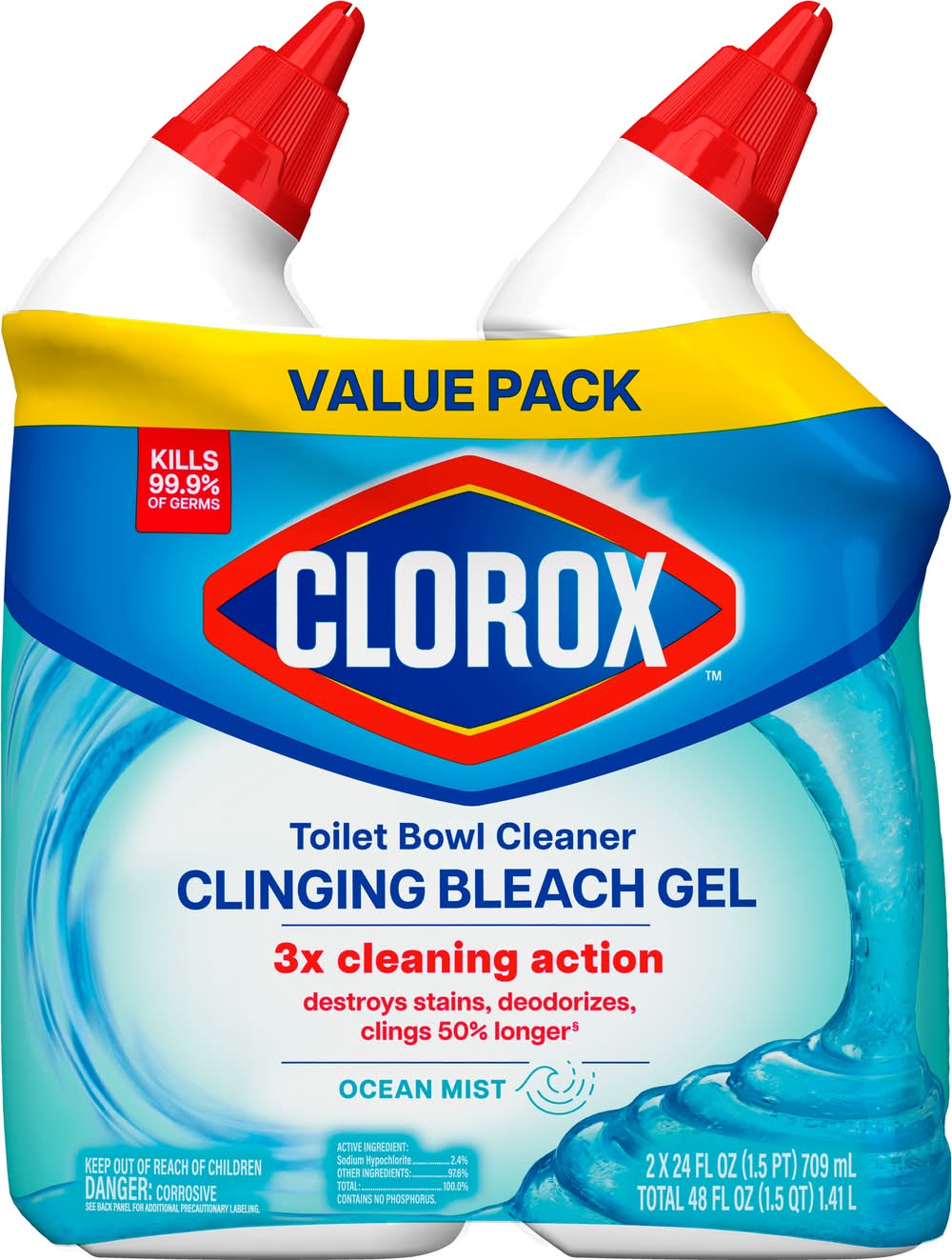 Clorox Clinging Bleach Gel Toilet Bowl Cleaner, Ocean Mist (2 x 24 fl oz)