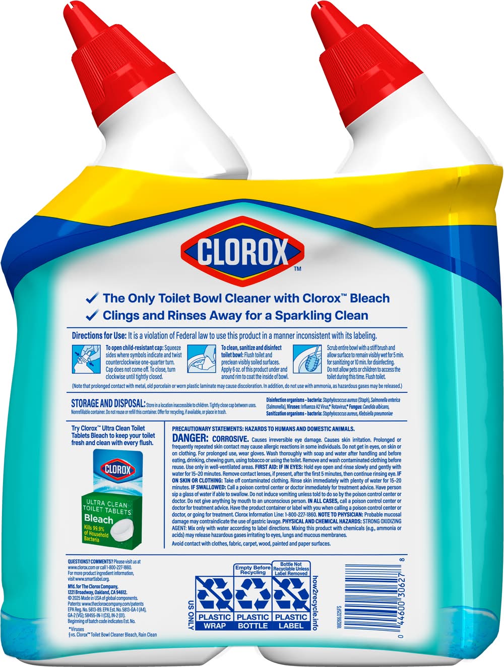 Toilet Bowl Cleaner Clinging Bleach Gel • Pack size: 2 • The clorox company, 1221 Broadway,Oakland,CA,94612,800-227-1860,www.clorox.com • Packaging: Reusable