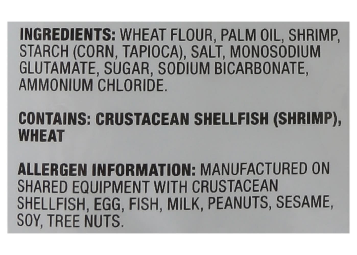 Contains: Wheat, Shrimp, Corn, Milk, Fish, Tree Nuts, Coconuts, Peanuts, Soybeans, Sesame, Crustacean Shellfish