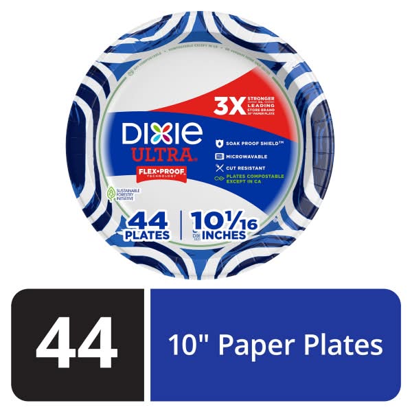 Dixie Ultra Paper Plates, 10 Inch, Multi-Color, 44 Count