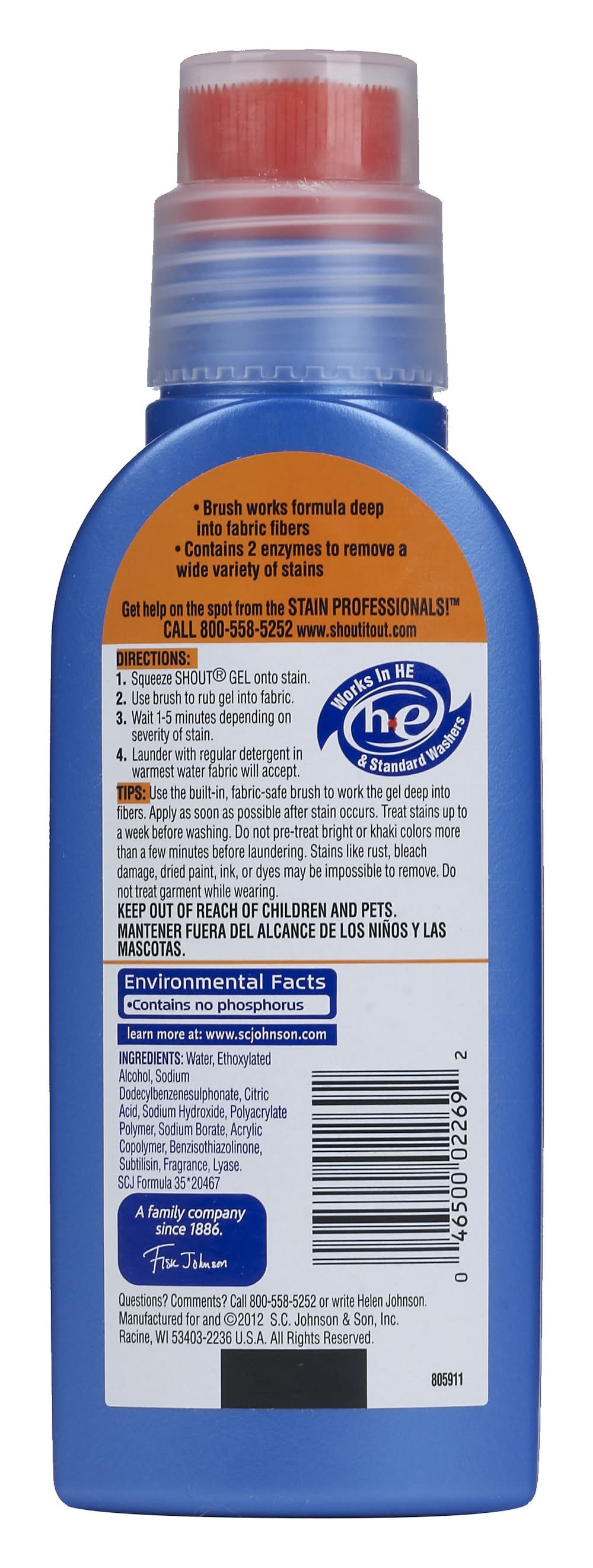 Shout Advanced Ultra Gel Brush features a unique formula designed to tackle stubborn stains. The product comes with an integrated brush that helps to penetrate deep into fabrics, ensuring thorough removal of difficult stains. Packaging: Reusable