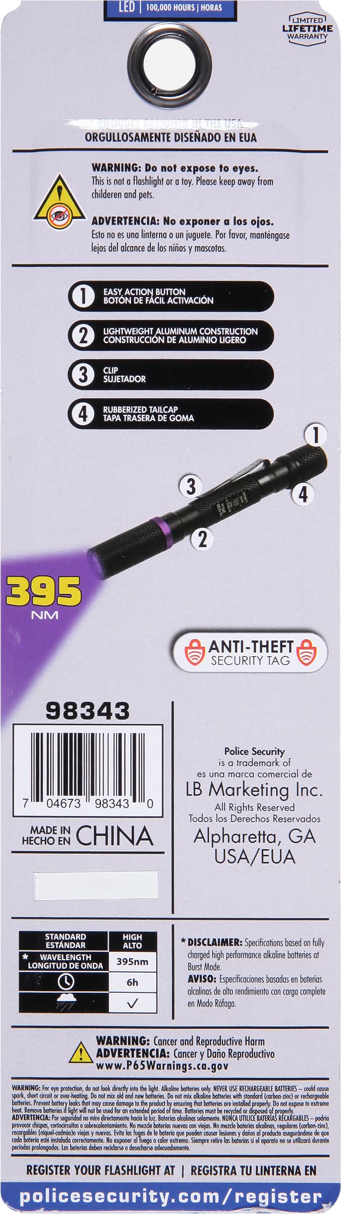 Police Security Flashlights Uv Inspection Light (3.2 oz)