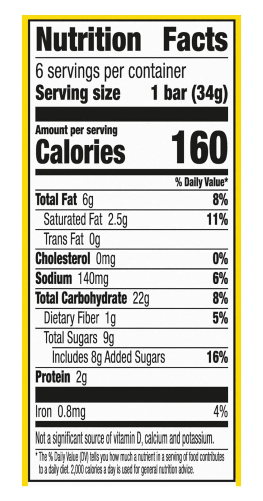 Ingredients: Whole Grain Oats, Corn Syrup, Cashews Roasted in Safflower Oil, Sugar, Rice Flour, Palm Kernel Oil, Fructose, Tapioca Syrup, Vegetable Glycerin, Cashew Butter (Cashew Nuts, Safflower Oil), Canola and/or Sunflower Oil, Whey, Salt, Soy Lecithin, Corn Starch, Barley Malt Extract, Honey Roasted Almond Butter (Almonds, Honey, Maltodextrin, Palm Oil, Mixed Tocopherols), Peanut Flour, Baking Soda, Natural Flavor, Vitamin E (Mixed Tocopherols) Added to Retain Freshness Contains: Milk, Peanuts, Soybeans, Tree nuts