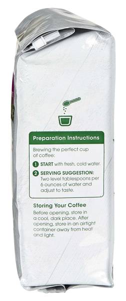 True Goodness Organic French Roast Ground Coffee is a dark roast coffee, ground to deliver a robust flavor profile with hints of chocolate. It is Fair Trade Certified, ensuring that it meets rigorous social, environmental, and economic standards. This product offers a rich and indulgent coffee experience.