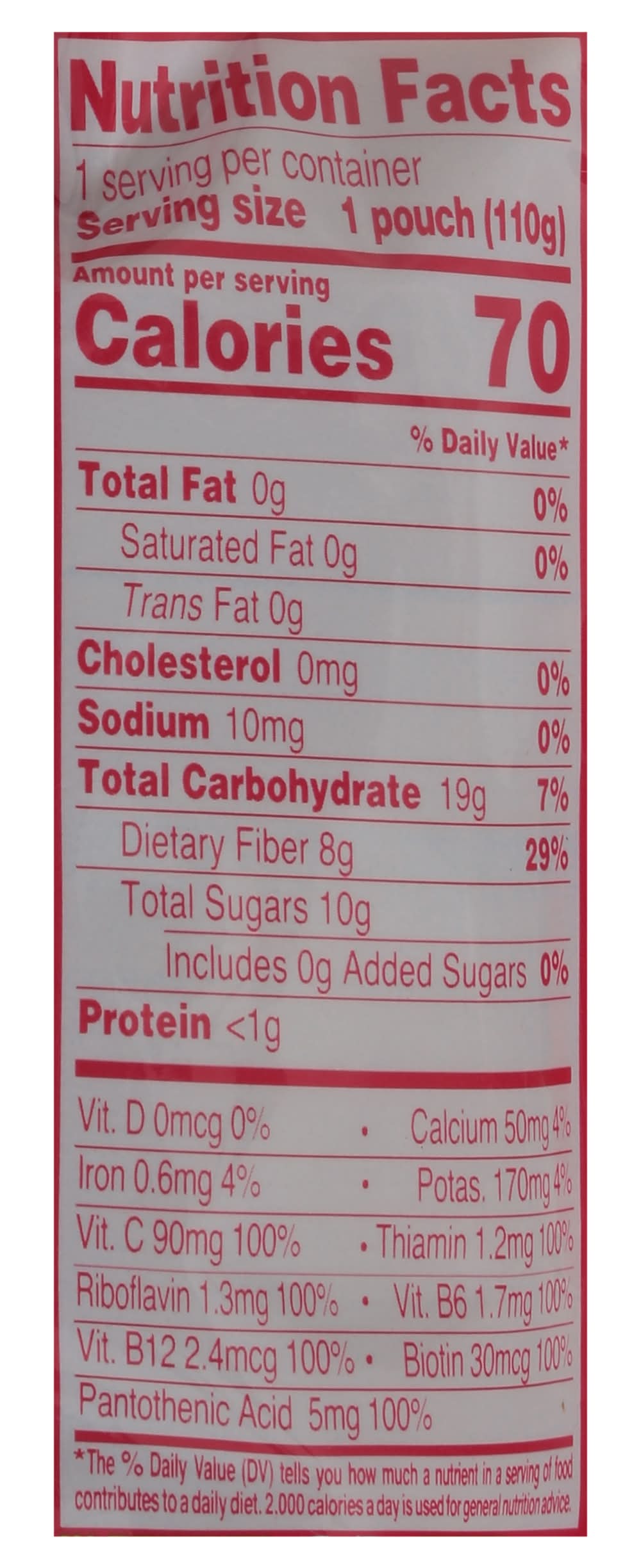 Ingredients: Organic Apple, Organic Strawberry, Organic Kiwi, Organic Acacia (Prebiotic), Organic Kale, Ascorbic Acid (Vit. C), B-Vit. Mix (Calcium D-Pantothenate (Pantothenic Acid), Pyridoxine Hydrochloride (Vit. B6), Riboflavin (Vit. B2), Thiamine Hydrochloride (Vit B1), Biotin, Cyanocobalamin (Vit. B12)), Organic Lemon Juice Concentrate