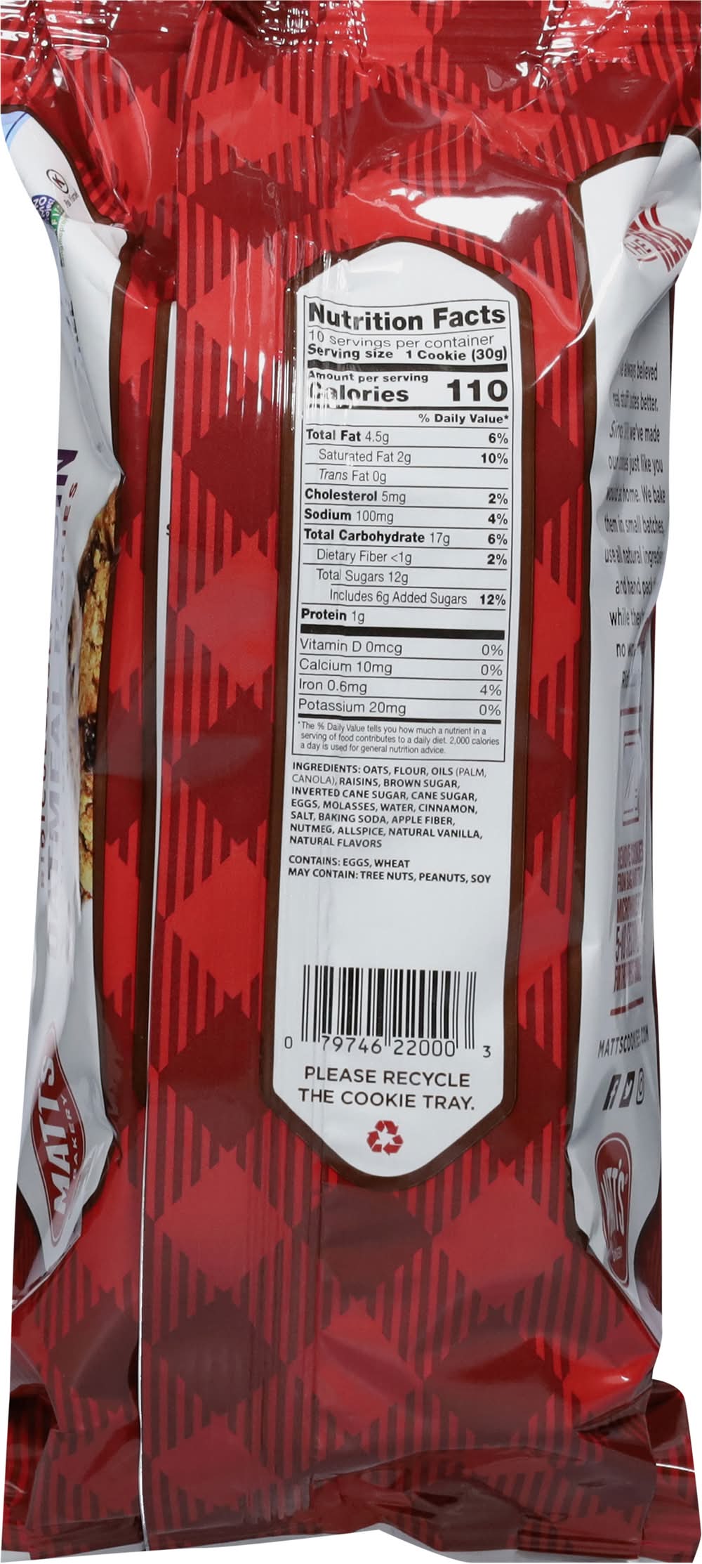 Cookies, Oatmeal Raisin, Soft-Baked • Number of servings: 10 • Packaging: Reusable