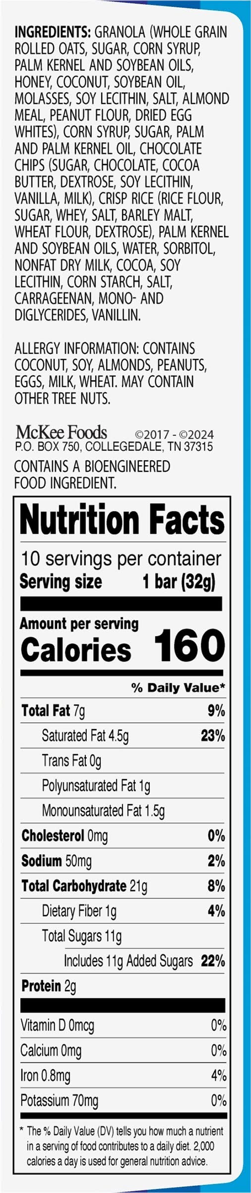 Granola Bar, Chewy, Chocolate Chip, Fudge Dipped • Mckee Foods, PO Box 750, Collegedale, TN, 37315 • Packaging: Reusable