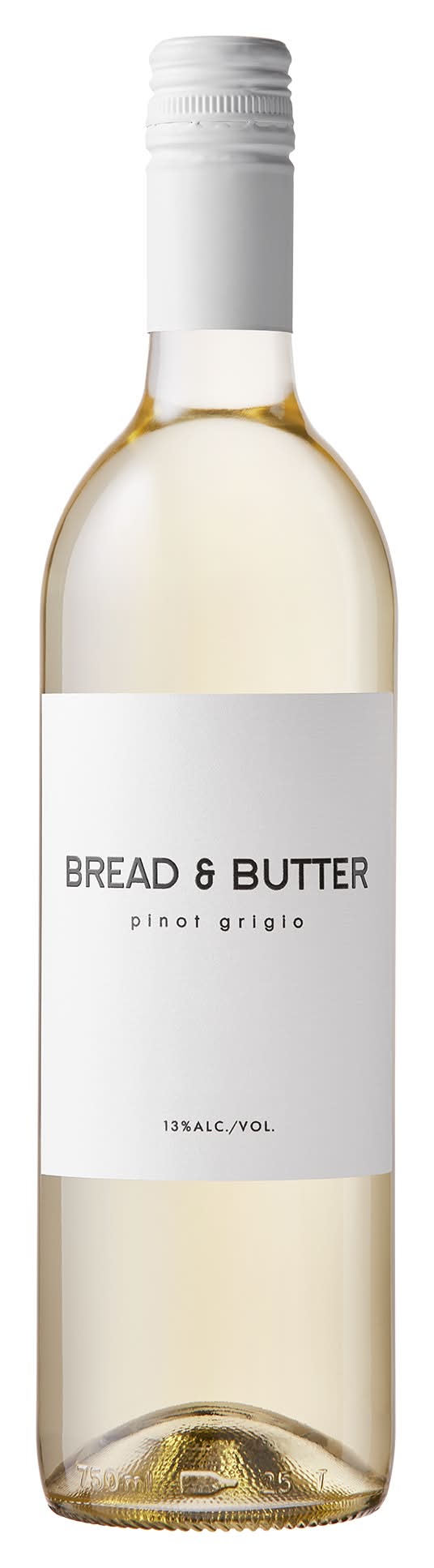 Classic, California pinot grigio with fresh notes of white floral, lemon and peach. 12.5% alc./vol. 25 Vinted and Bottled by Bread & Butter, Napa, California. Alcohol by volume: 12.5%
