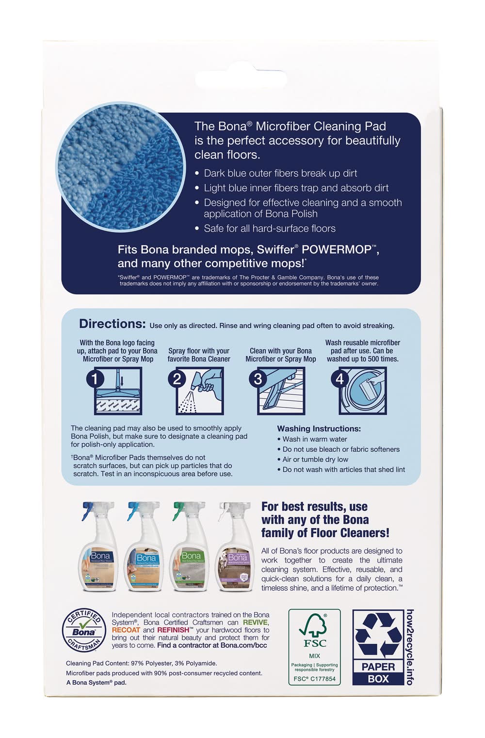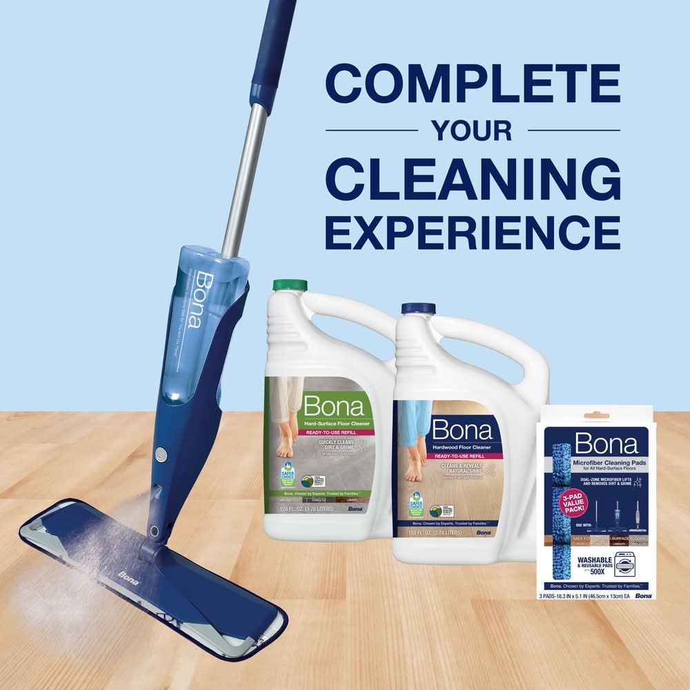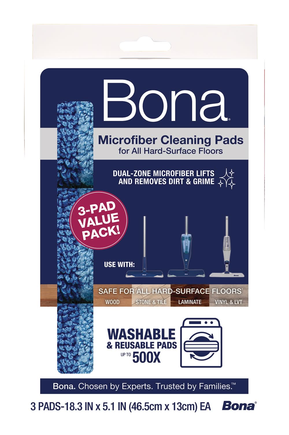 Bona Cleaning Microfiber Mop Pad, 18.31x5.12 in, Blue (3.93 lbs, 3 ct)