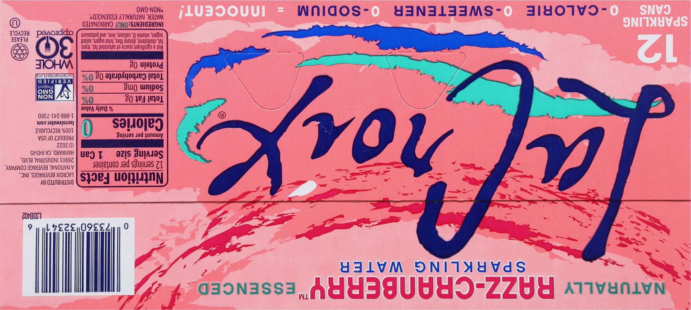 LaCroix Sparkling Water is a refreshing and healthy beverage that can be enjoyed in any setting. Each sip of LaCroix Sparkling Water is flavored with the natural essence oils extracted from the named fruit on the can. It contains 0-calories, 0-sweeteners, and 0-sodium. This means you can enjoy the refreshing taste of a carbonated beverage completely guilt-free. LaCroix sparkling drinks are vegan, gluten-free, and tastes great! Our water is sourced in the U.S.A. and has a lower carbon footprint. The average person needs to drink eight 8-oz glasses of water a day, and with LaCroix Sparkling Water, each of those eight glasses can have a special zest that you will love! Enjoy LaCroix! • Flavor: Razz-cranberry • Pack size: 12 • Lacroix Beverages, Inc., 26901 Industrial Blvd.,Hayward,CA,94545 • Packaging: Reusable