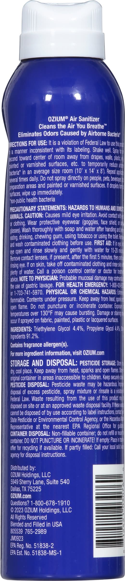 Directions for use: Usage of instructions:Directions for Use: It is a violation of federal law to use this product in a manner inconsistent with its labeling. Shake well. Spray for one second toward center of room away from drapes, walls, plastic, vinyl, painted or varnished surfaces, etc. to temporarily reduce airborne bacteria in an average size room (10 inch x 14 inch x 8 inch). Repeat application several times daily. Treat average size rooms twice with one second sprays for smoke and malodor control caused by airborne bacteria. Do not spray directly on people, pets, beverages, food preparation areas and painted or varnished surfaces. If droplets form on surfaces, wipe up immediately. - Directions: for Use: It is a violation of federal law to use this product in a manner inconsistent with its labeling. Shake well. Spray for one second toward center of room away from drapes, walls, plastic, vinyl, painted or varnished surfaces, etc. to temporarily reduce airborne bacteria in an average size room (10 inch x 14 inch x 8 inch). Repeat application several times daily. Treat average size rooms twice with one second sprays for smoke and malodor control caused by airborne bacteria. Do not spray directly on people, pets, beverages, food preparation areas and painted or varnished surfaces. If droplets form on surfaces, wipe up immediately. Storage and Disposal: Pesticide Storage: Store in a dry, cool place. Keep away from heat, sparks and open flames. Pesticide Disposal: Pesticides wastes may be hazardous. Improper disposal of excess pesticide, spray mixture or reinstate is a violation of federal law. If these wastes cannot be disposed of by use according to label instructions, contact your state pesticide or environmental control agency, or the hazardous waste representative at the nearest EPA regional office for guidance. Container Disposal: Non-fillable container; do not refill or reuse this container. Do not puncture or incinerate if empty. Place in trash or offer for recycling if available. If partly filled. Call your local solid waste agency for disposal instructions. Storage recommendation: Storage and Disposal: Pesticide Storage: Store in a dry, cool place. Keep away from heat, sparks and open flames. Pesticide Disposal: Pesticides wastes may be hazardous. Improper disposal of excess pesticide, spray mixture or reinstate is a violation of federal law. If these wastes cannot be disposed of by use according to label instructions, contact your state pesticide or environmental control agency, or the hazardous waste representative at the nearest EPA regional office for guidance. Container Disposal: Non-fillable container; do not refill or reuse this container. Do not puncture or incinerate if empty. Place in trash or offer for recycling if available. If partly filled. Call your local solid waste agency for disposal instructions.