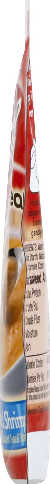 First wet cat treat that combines real tuna and shrimp in a delicious juice for a lickable taste your cat will crave.