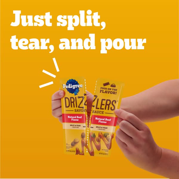 Savory Sauce Pouches bring delicious flavor to your favorite kibble. Packed in a unique dual-serving split pouch, Savory Sauce Pouches let you pour on the flavor now and later. To add flavor to mealtime, split the pouches apart, tear one open, and pour it on your dry kibble. The savory sauce coats dry kibble so it stays crunchy while adding flavor and only 4 calories per serving. This Pedigree Savory Sauce Multipack comes with. They contain only 8 ingredients and are formulated without artificial flavors, high fructose corn syrup, added sugars, and artificial preservatives, although trace amounts may be present due to potential cross-contact during manufacturing. Pour on the flavor and excitement at mealtime with Pedigree