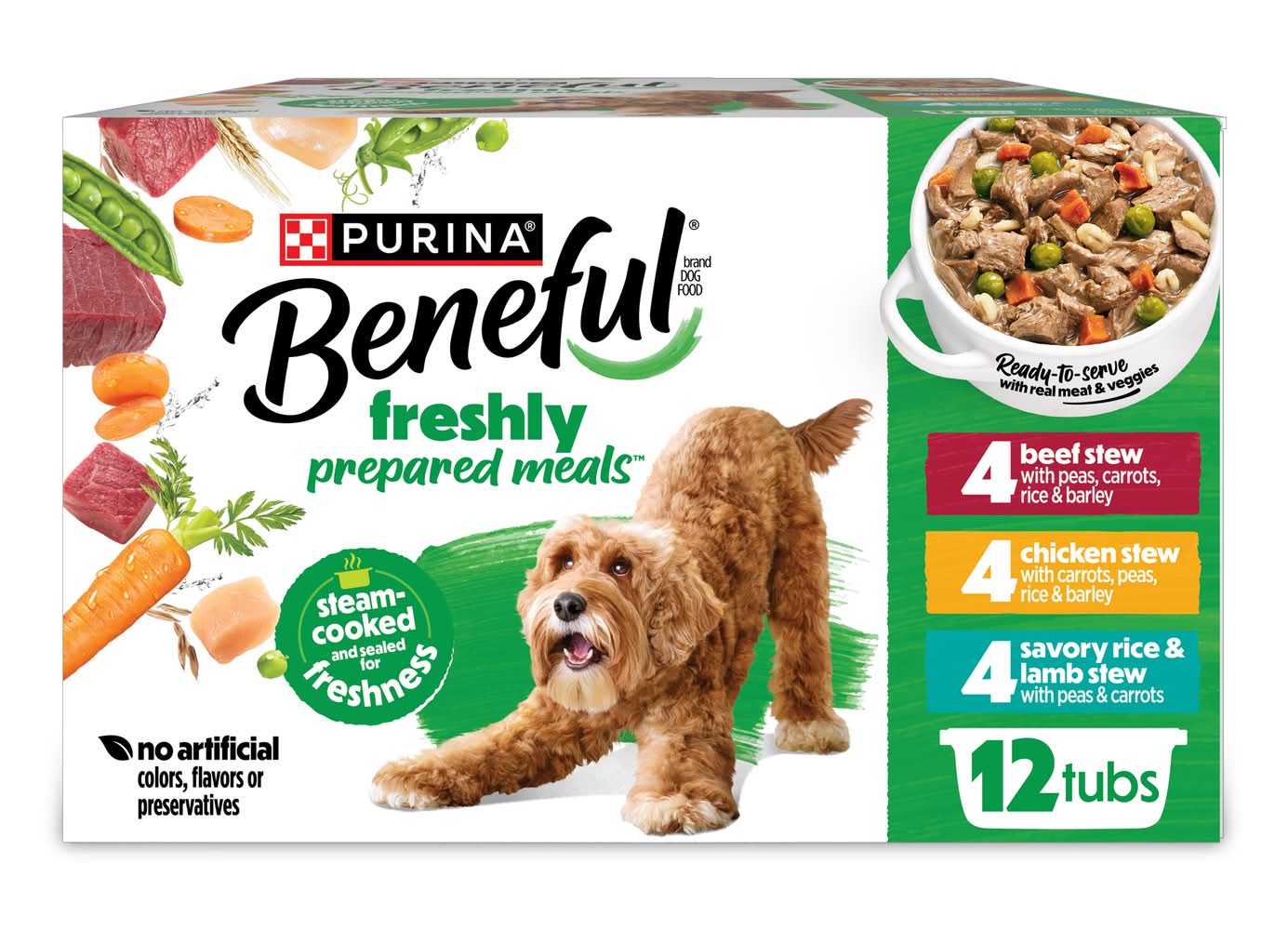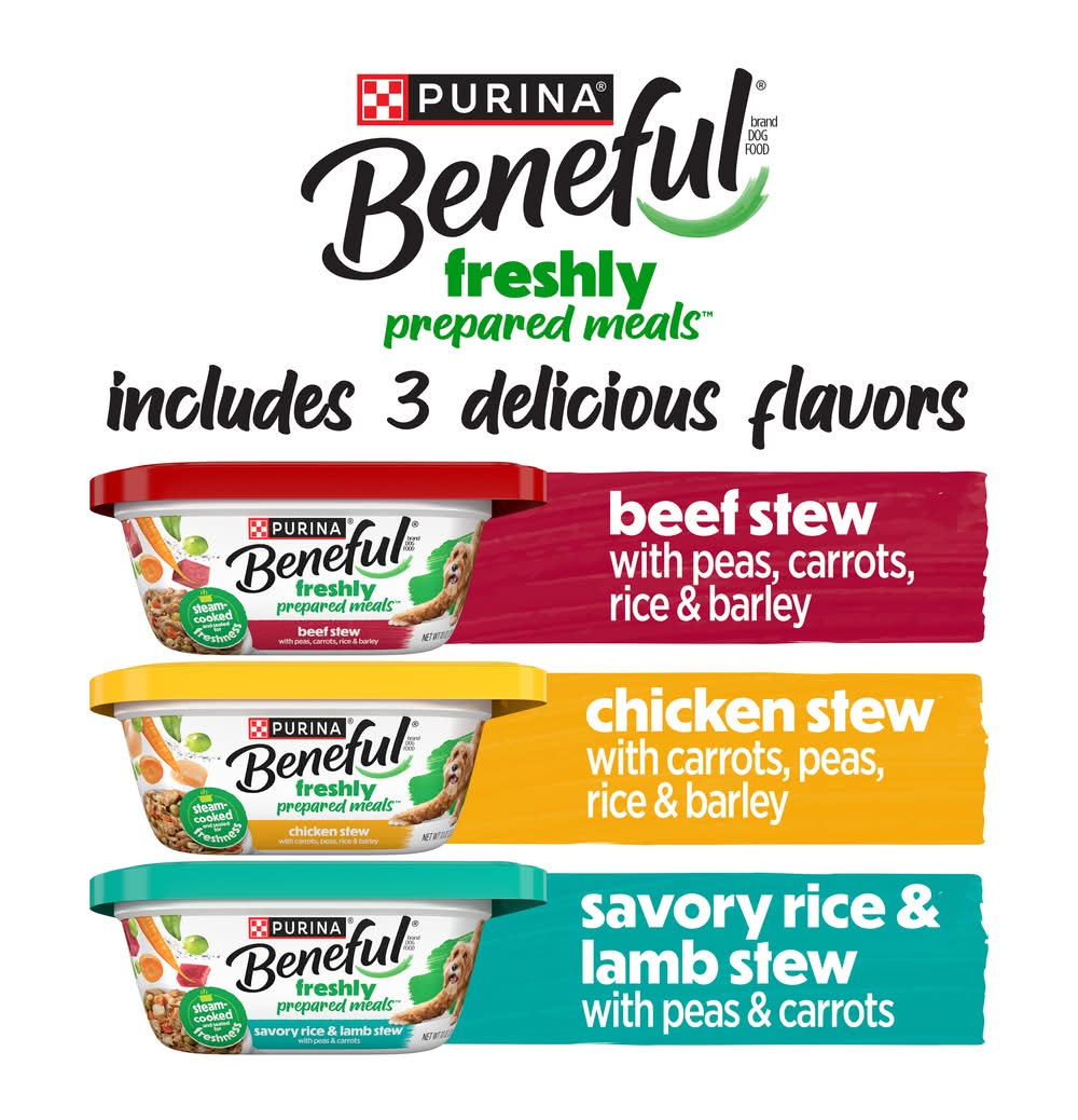 Purina Beneful Freshly Prepared Meals Variety pack Wet Dog Food, Beef Stew-Chicken Stew-Savory Rice & Lamb Stew, Adult (7.5 lbs, 12 ct)