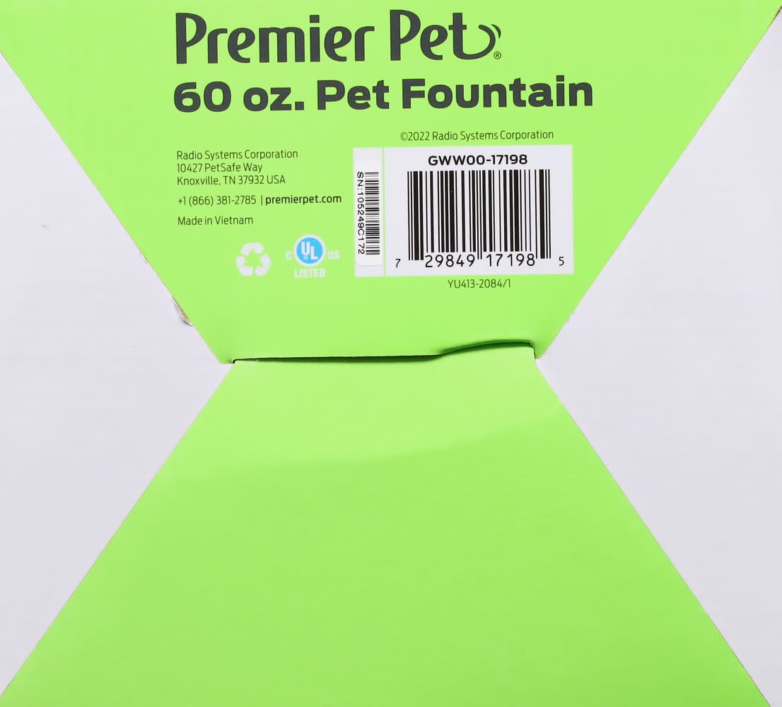 Premier Pet 60 Ounce Pet Fountain