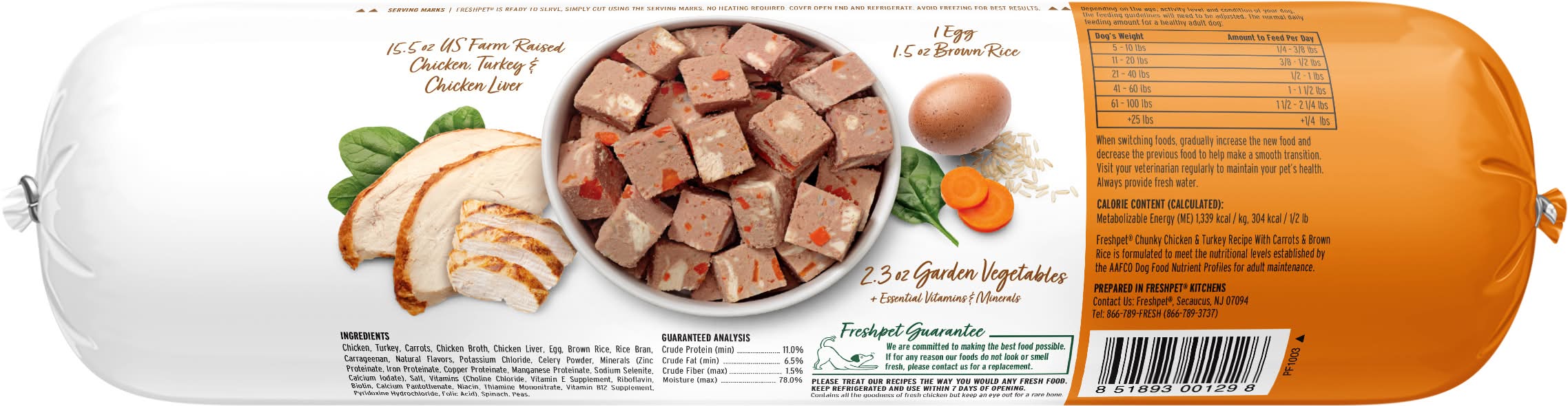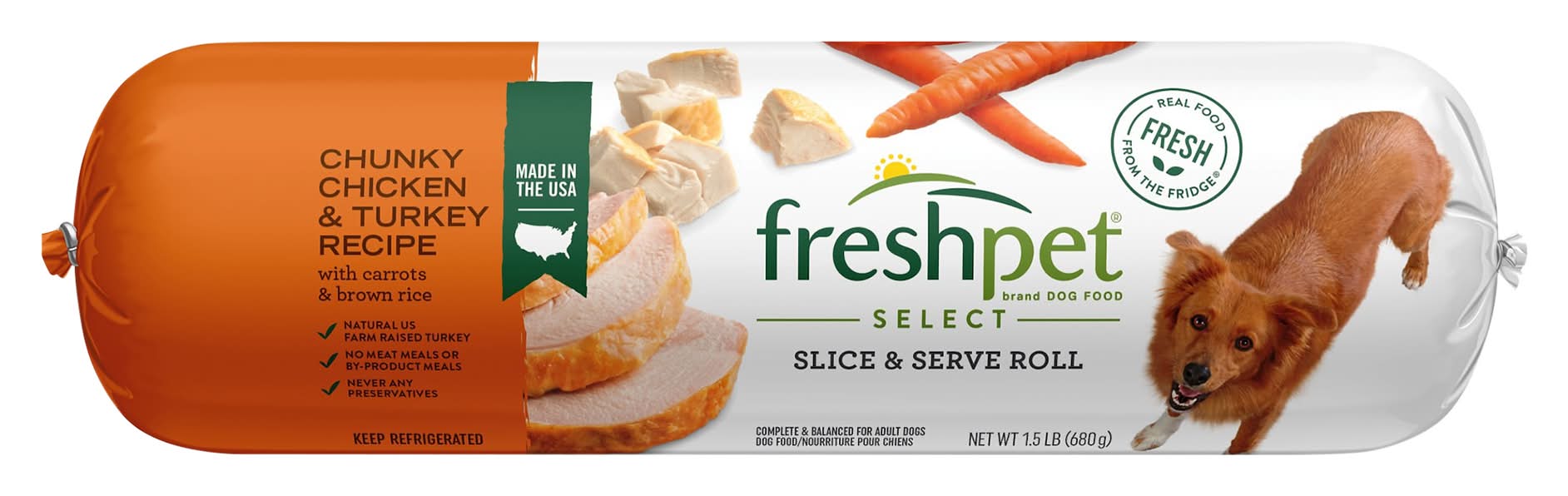 Freshpet Select Slice & Serve Roll Chunky Chicken & Turkey Recipe Dog Food, Adult (1.5 lbs)