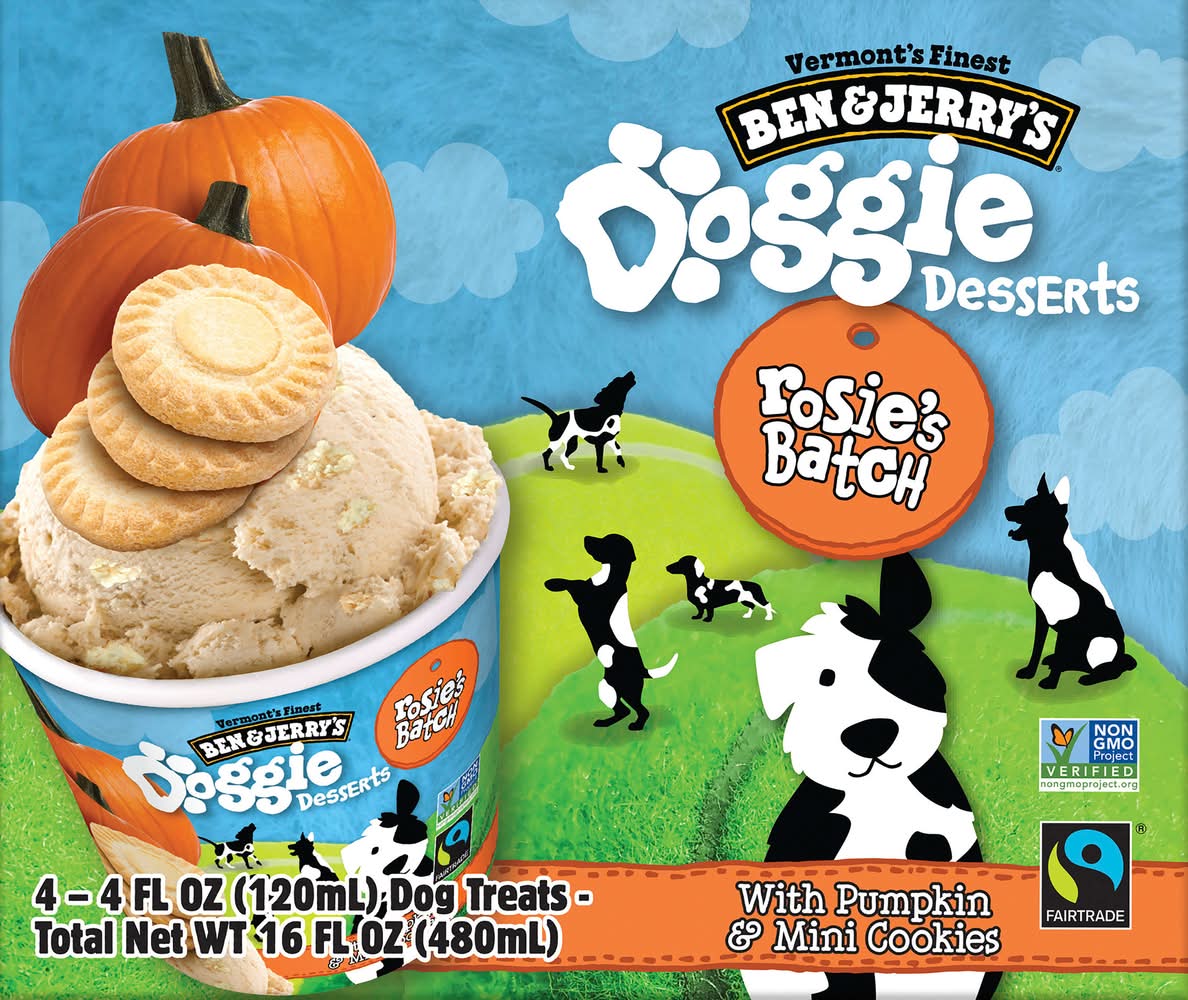 Ben & Jerry's Rosie's Batch Doggie Desserts Dog Treats With Pumpkin & Mini Cookies (4 x 4 fl oz)