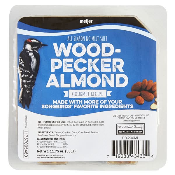 Meijer Premium Suet Cake Woodpecker, Almond, 11.75 oz